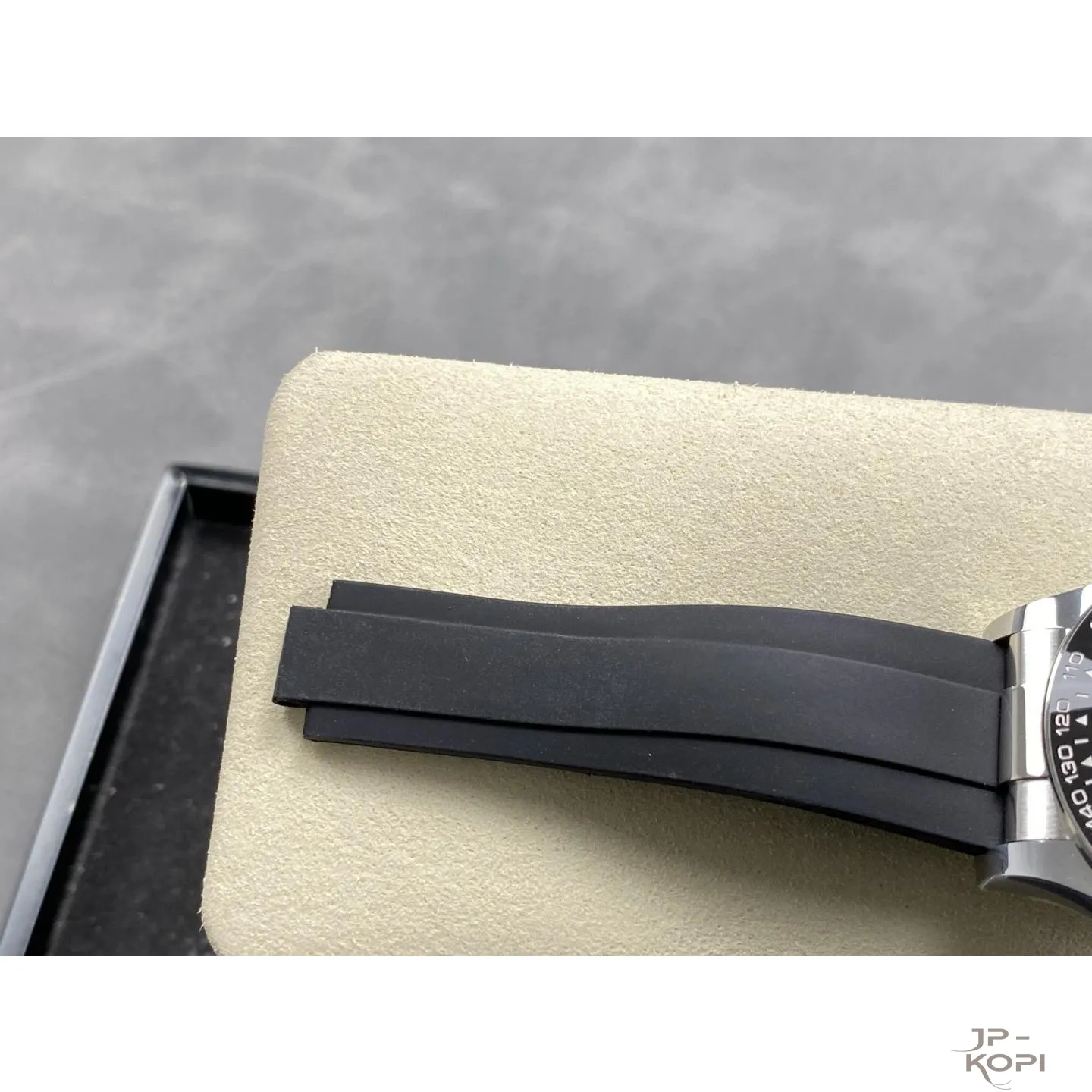 904Lステンレス製ケースと耐久性に優れたブラックセラミックベゼルが精悍な印象を演出します。