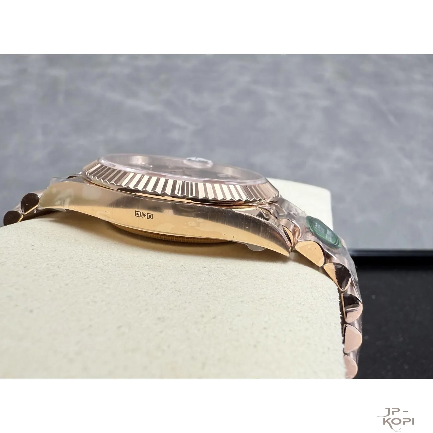 さらに、ロレックスらしいフルーテッドベゼルがラグジュアリーな存在感を強調しています。