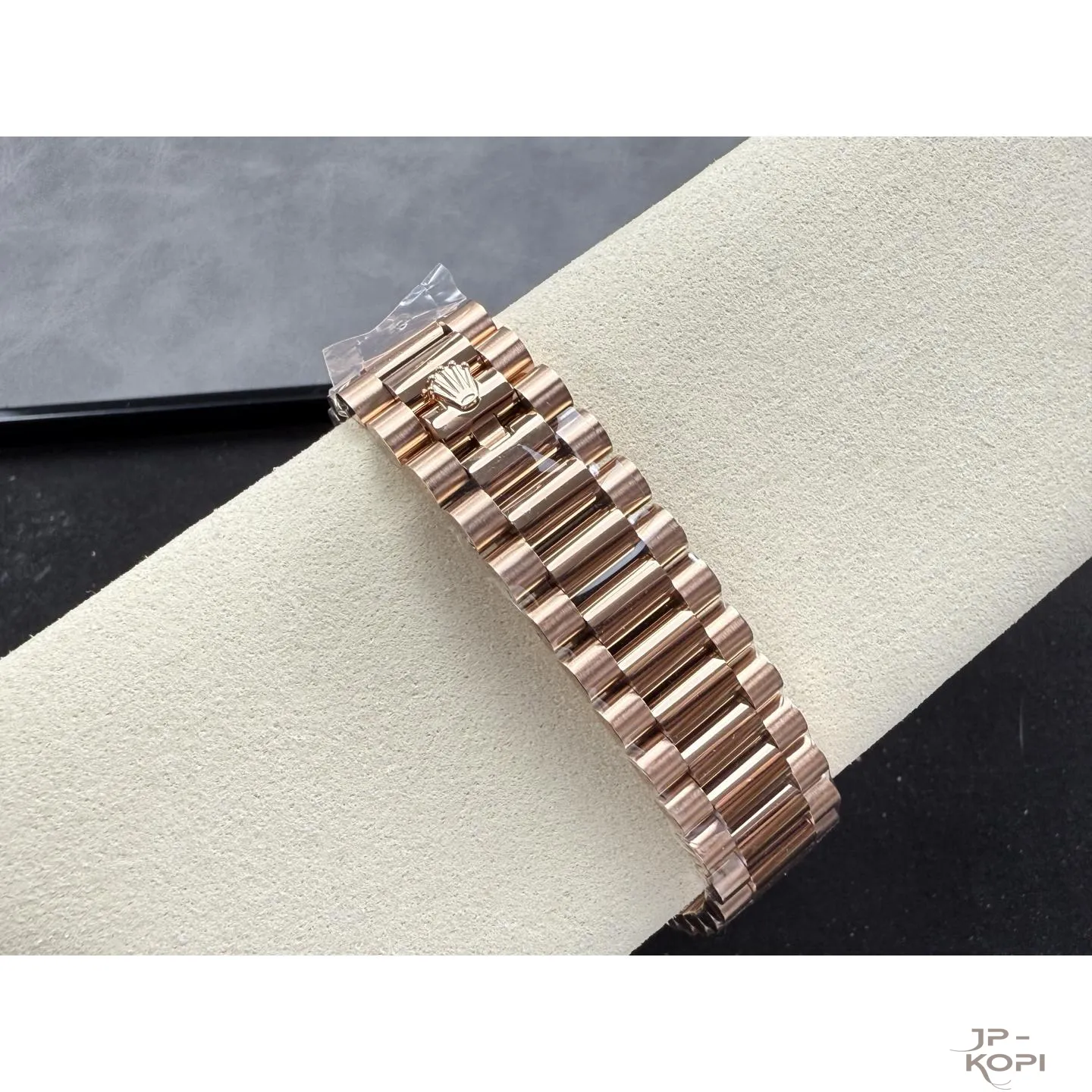 ケース・ベゼル・ブレスレットは904Lステンレスにローズゴールドメッキを施し、気品ある輝きを実現。