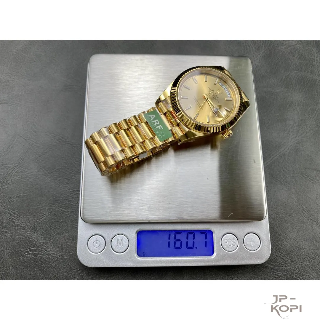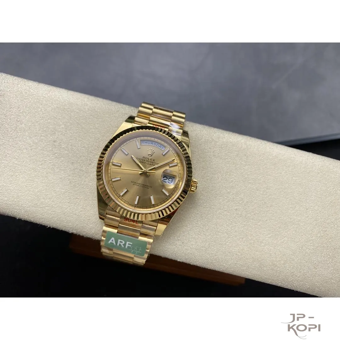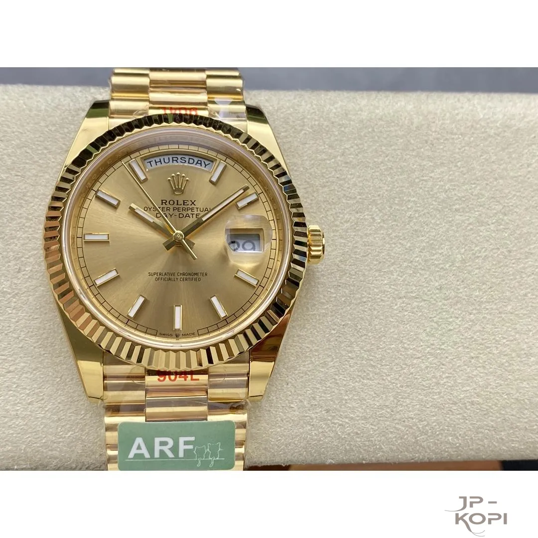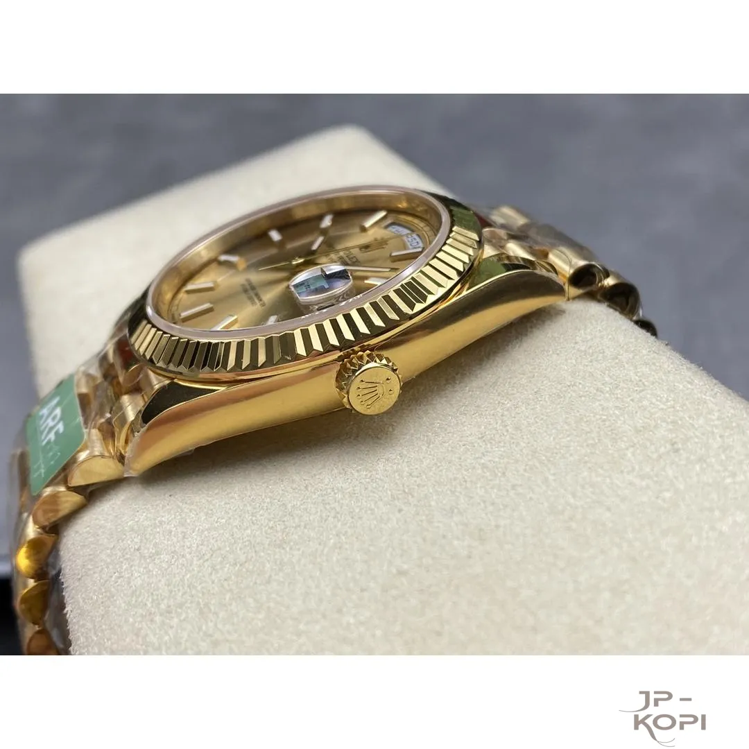 ロレックス デイデイト 40mm M228238-0003は、ラグジュアリー感を象徴するシャンパンダイアルを採用したモデル。