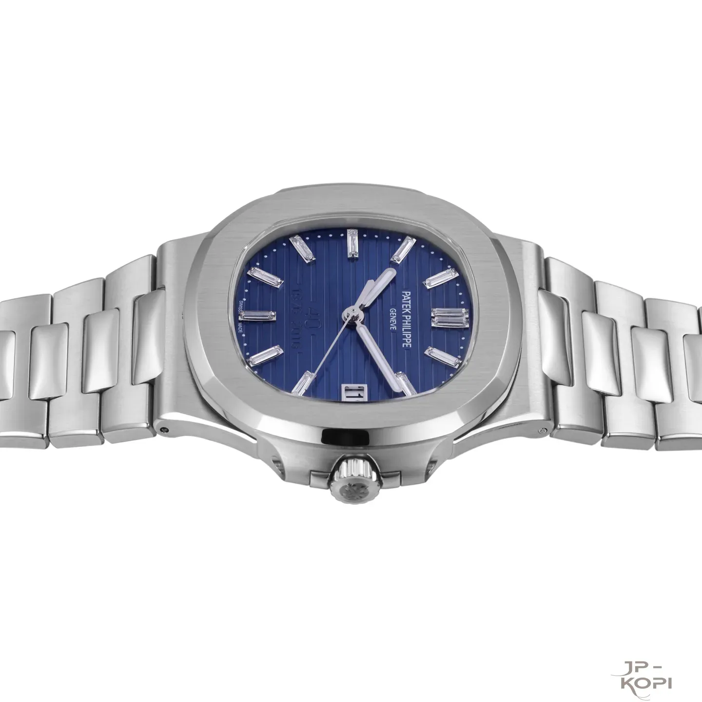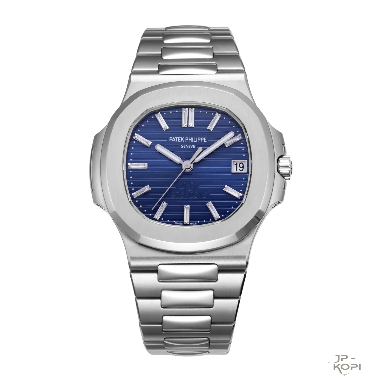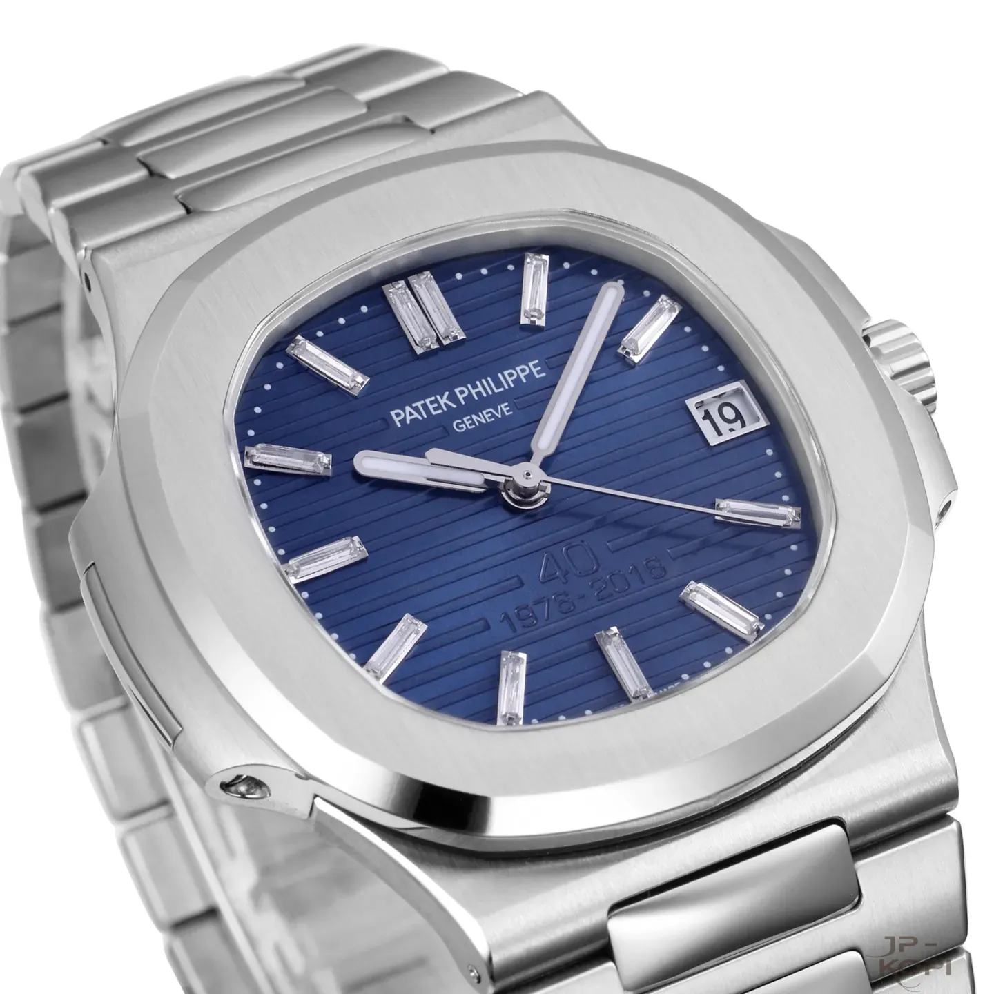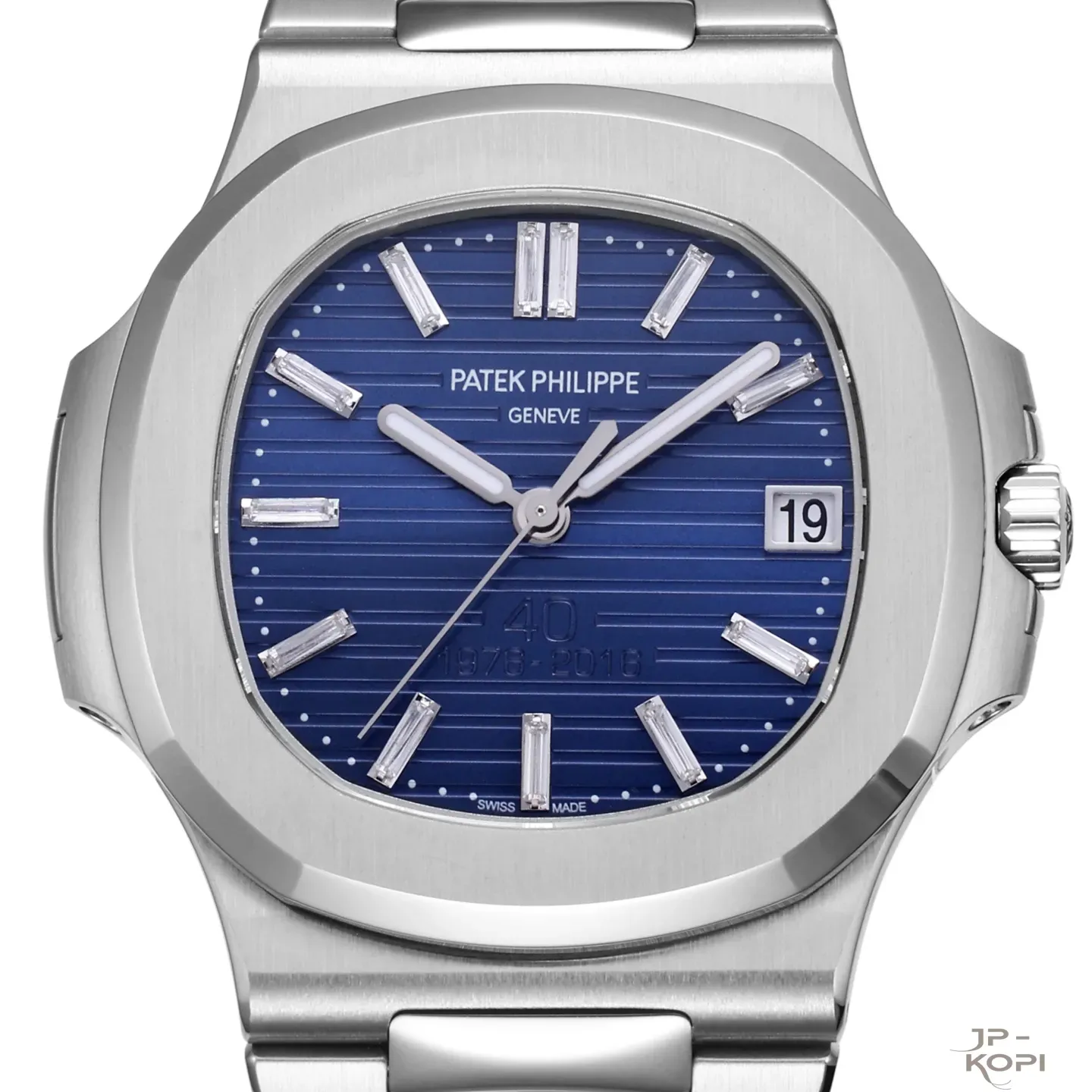 パテック・フィリップ ノーチラス 5711/1P 40周年記念限定は、SW製純正代用のブルー文字盤を採用した特別モデルです。BBF工場製のN+ランクで、丹東Cal.324自動巻きムーブメントを搭載しています。