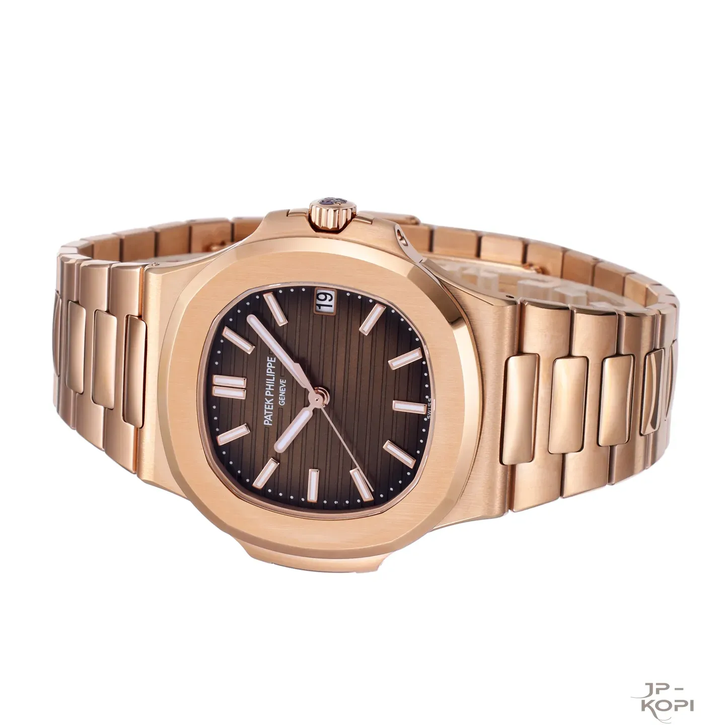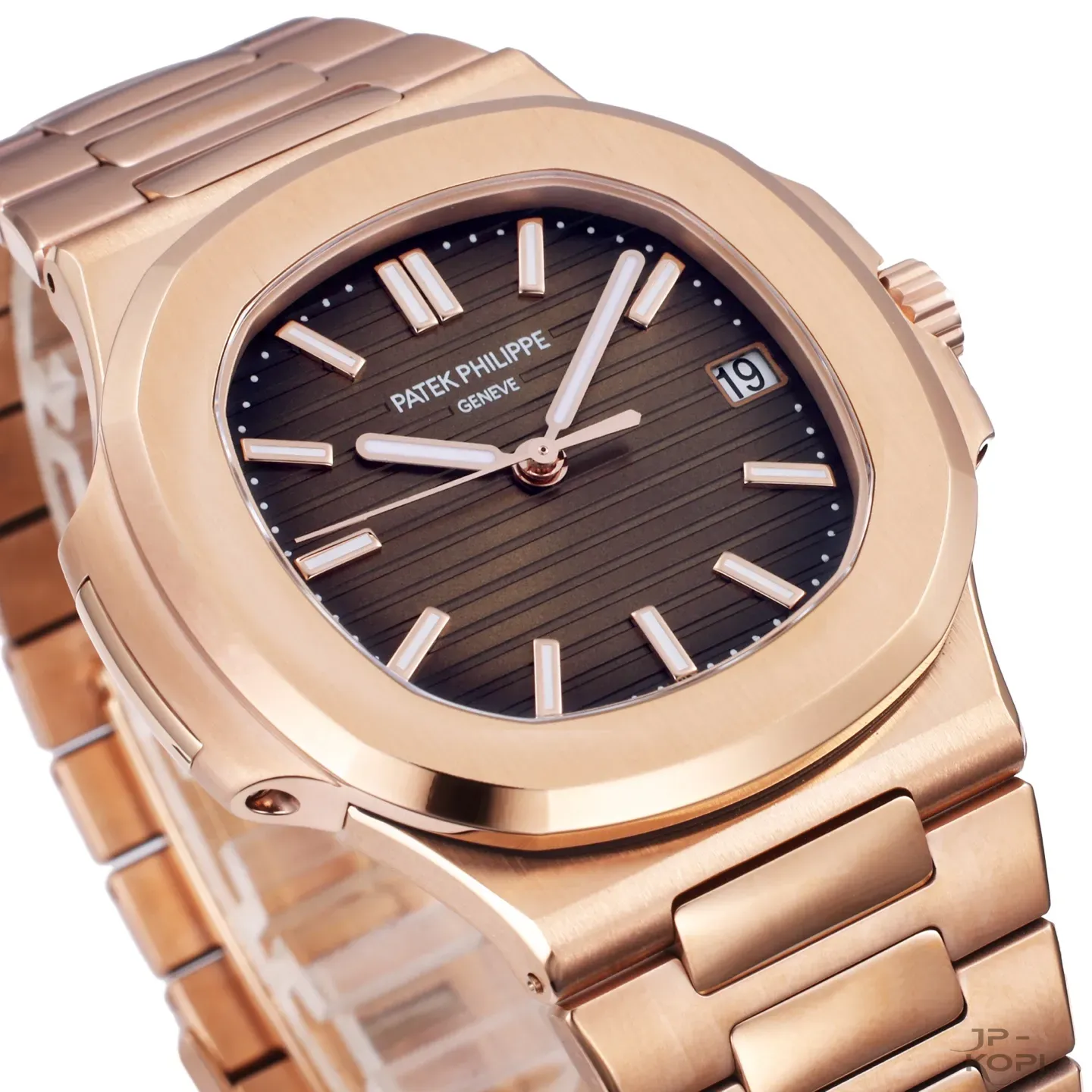パテック・フィリップ ノーチラス 5711/1R-001は、ラグジュアリー感あふれるローズゴールドカラーで仕上げられた人気モデルです。本製品はBBF工場製の高品質N+ランクで、文字盤と針にはSW製の純正代用品を使用しています。