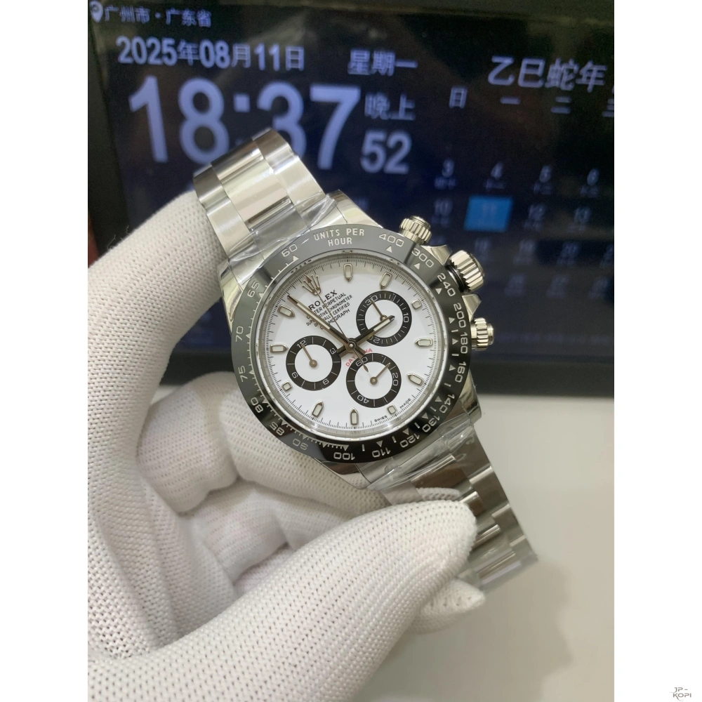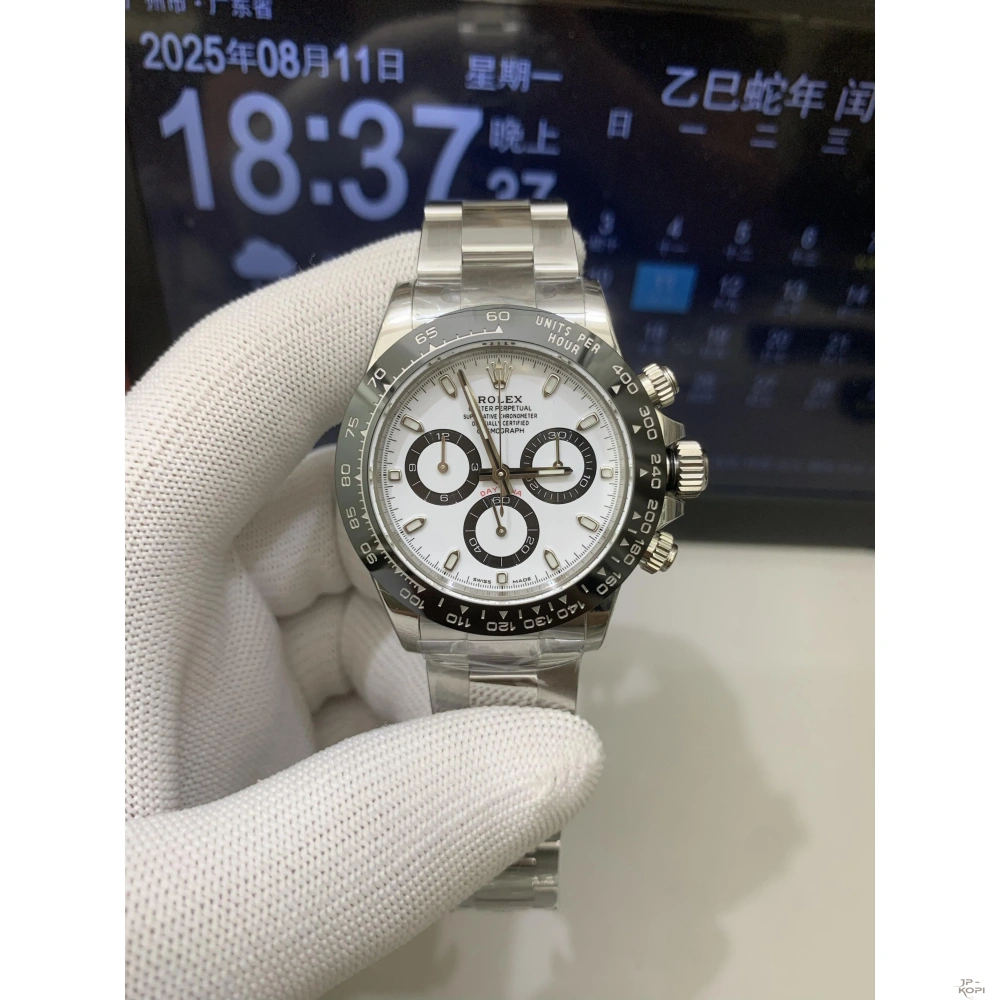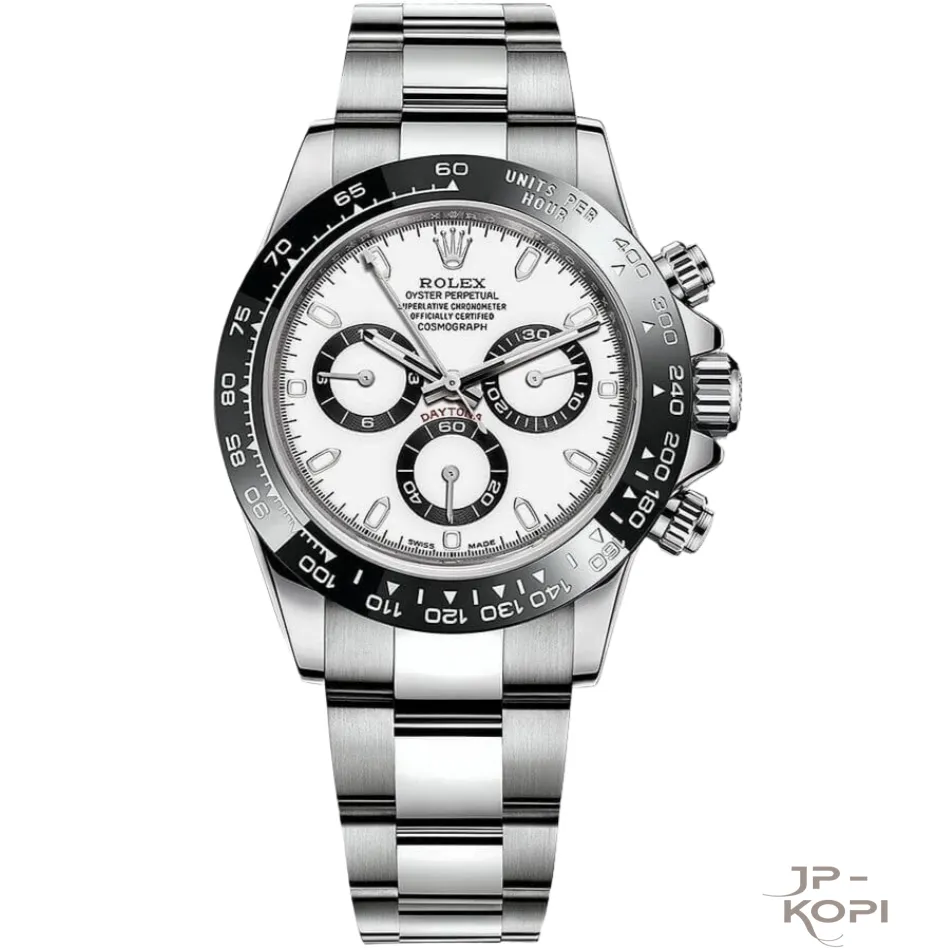 ロレックス コスモグラフ デイトナ 116500LN-0001は、BT工場製のN+ランク高精度レプリカモデル。伝統的な白文字盤と黒セラミックベゼルの組み合わせにより、クラシックかつスポーティーなデザインに仕上がっています。丹東Cal.4130自動巻きクロノグラフムーブメントを搭載し、全てのクロノグラフ機能が完全作動を実現。サファイアクリスタルガラスとステンレススティール素材のケース&ブレスレット、100m防水仕様で、日常使いにも適しています。