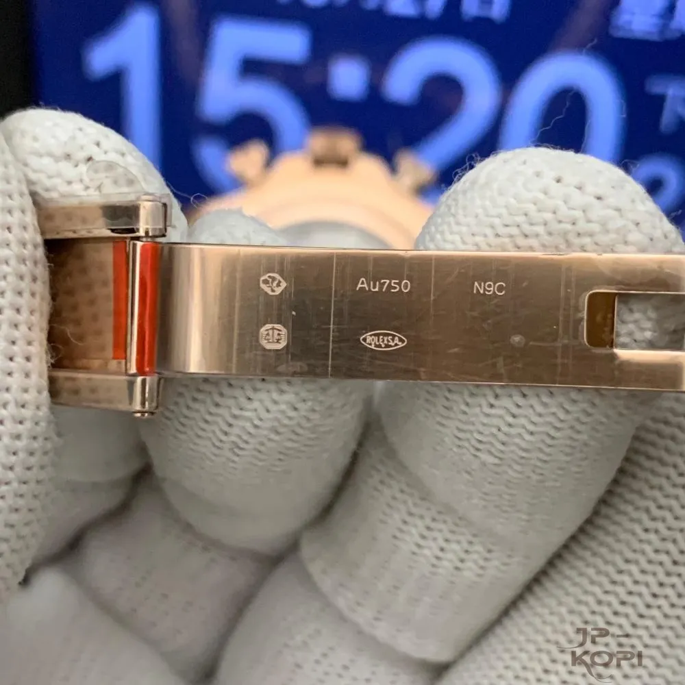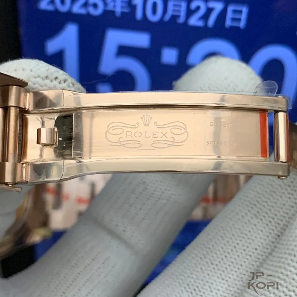 バンドにも904Lステンレス鋼(RGメッキ)が使われ、腕元を華やかに演出します。