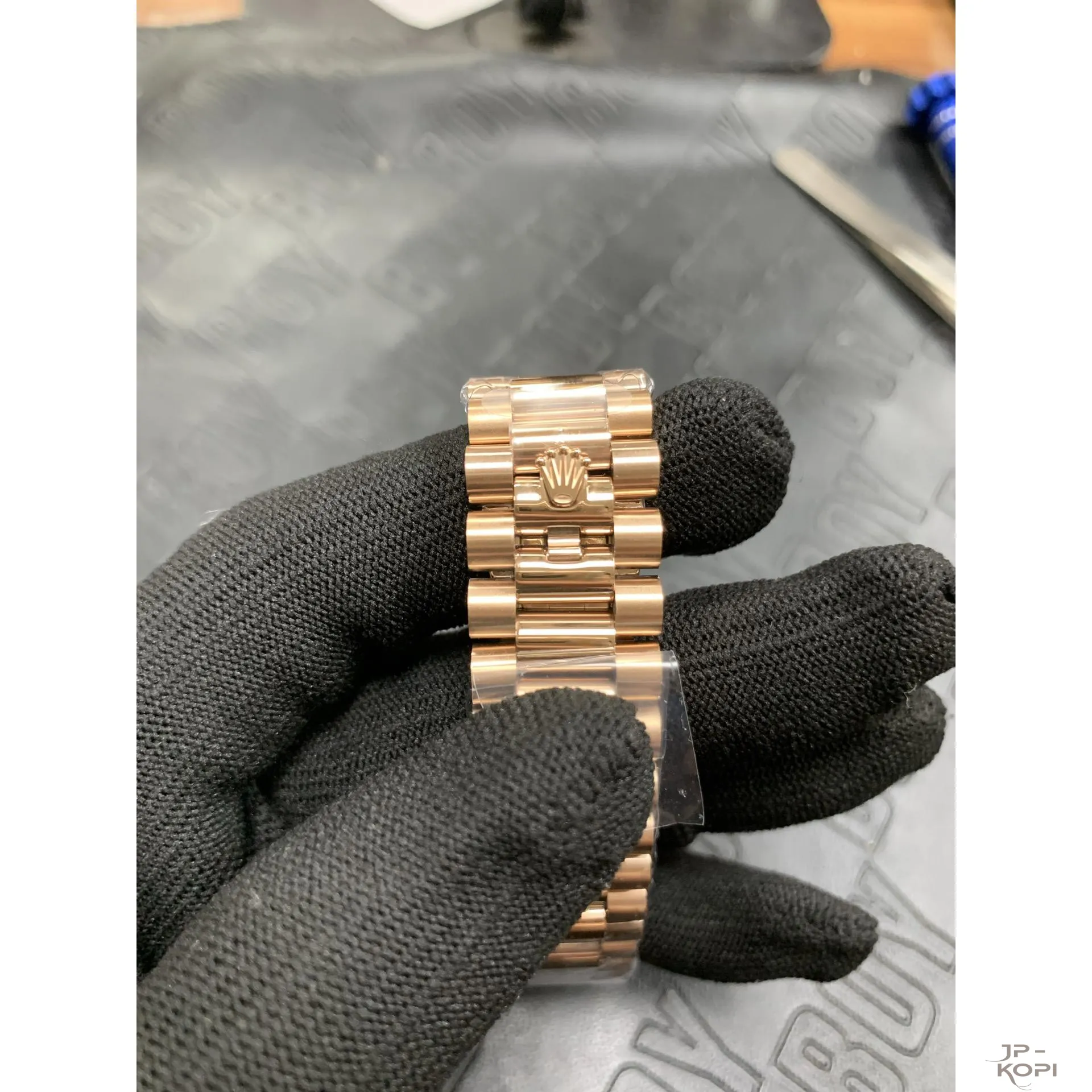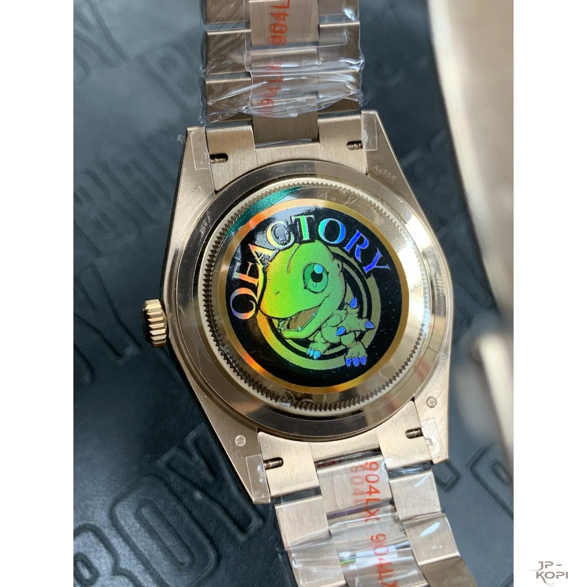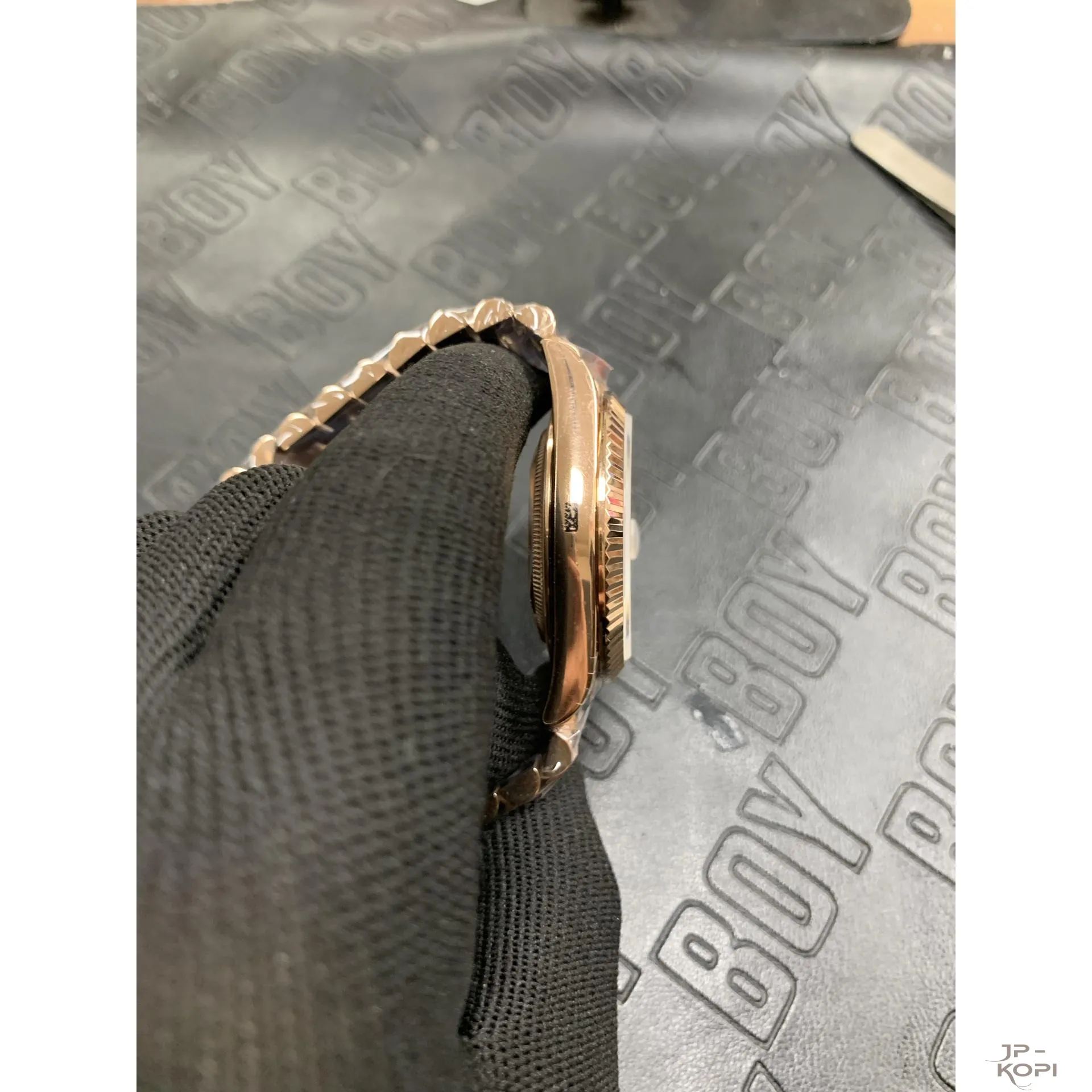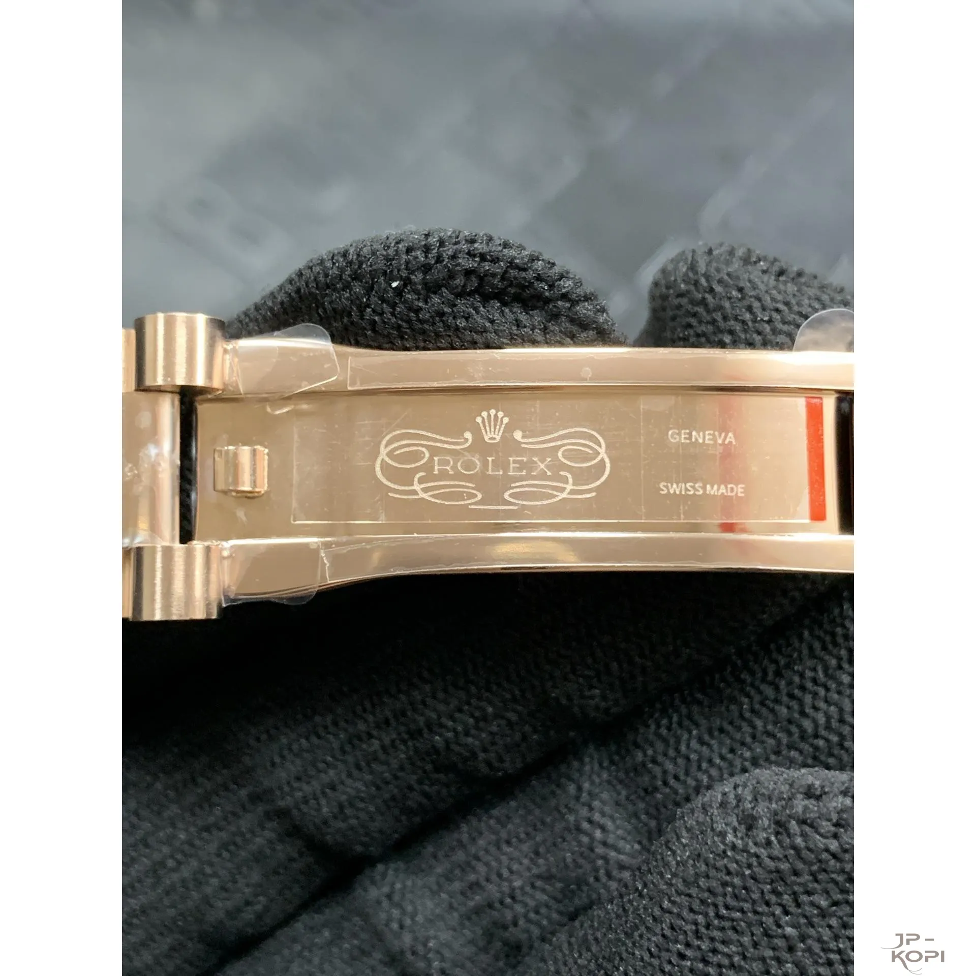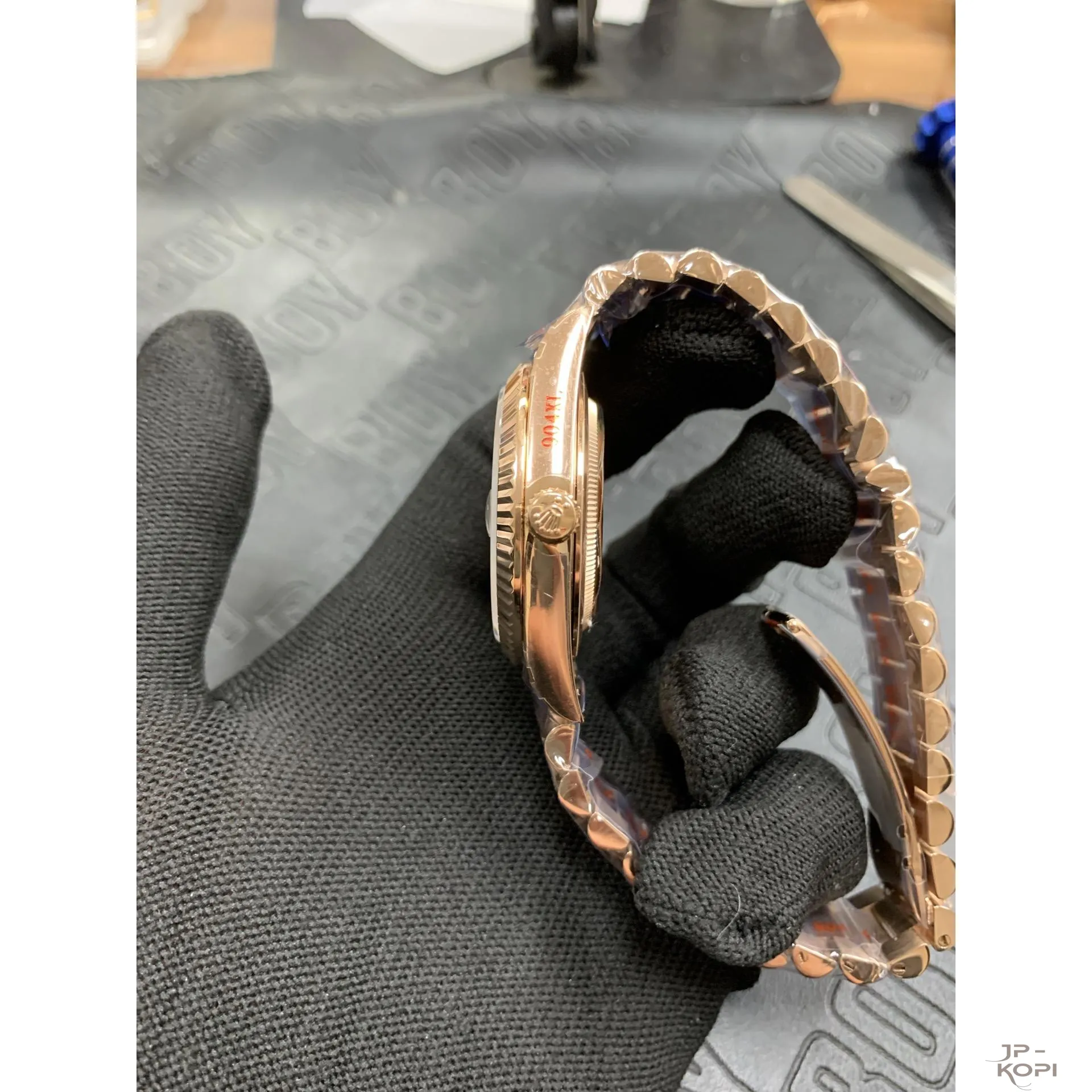 ケース・ブレスレットには904Lステンレス(ローズゴールドメッキ仕様)を採用し、ラグジュアリーな輝きを放ちます。