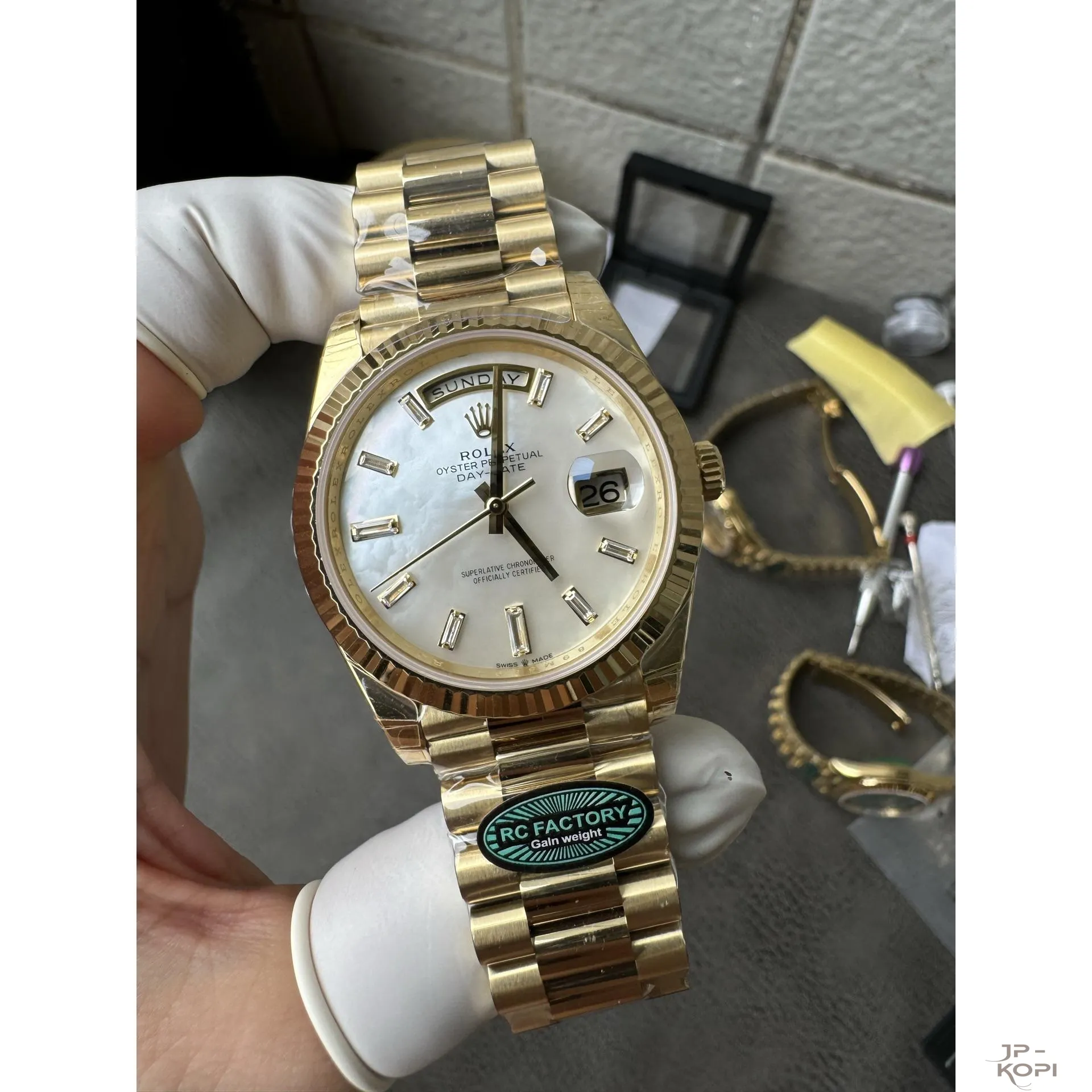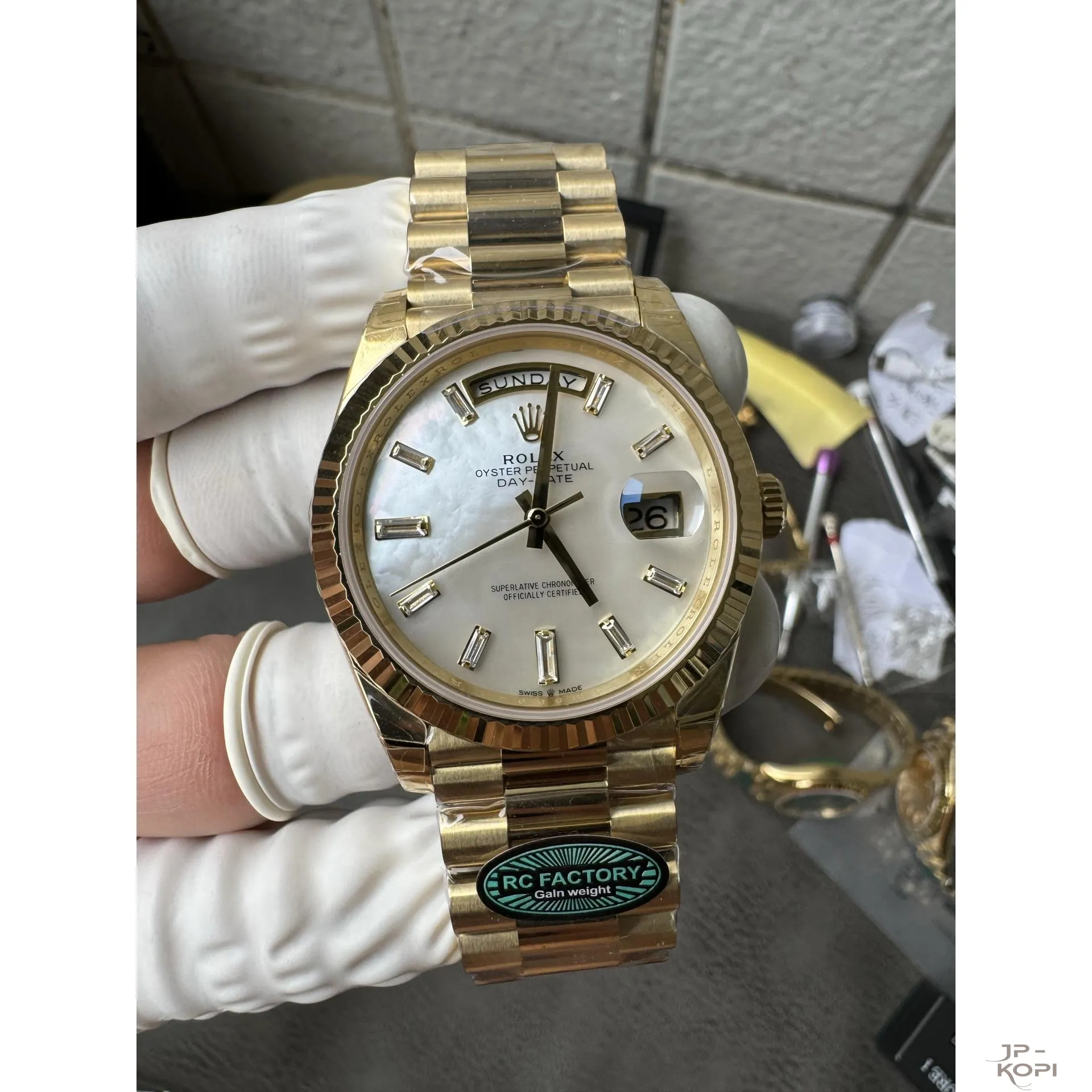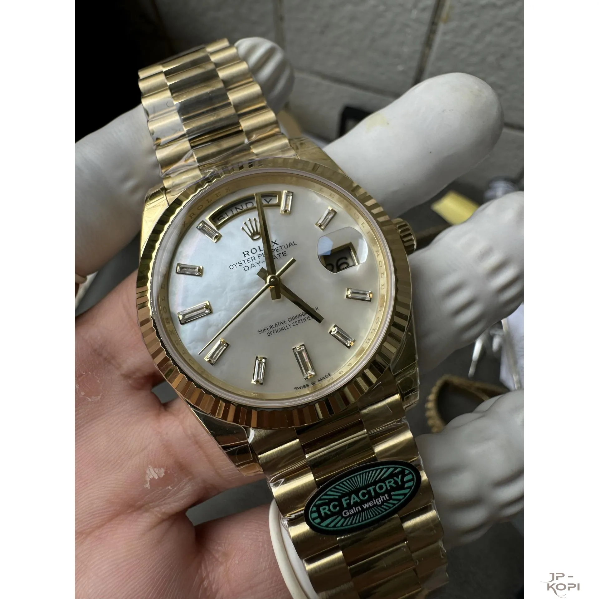 ロレックス デイデイト 40mm 228238-0071|ダイヤ入りホワイトマザーオブパール 上海Cal.3255 加重版【RC工場製 高品質コピー腕時計】