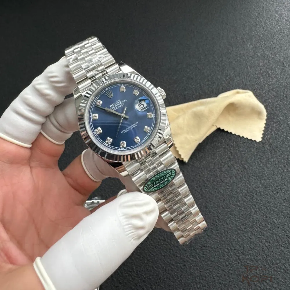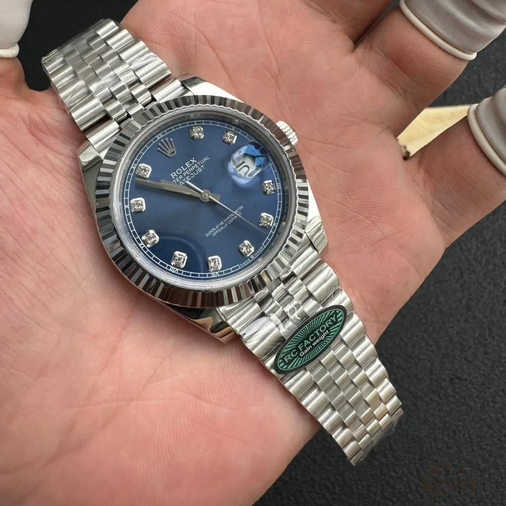エレガントなダイヤモンド入りブルーダイヤルを備えたモデル。