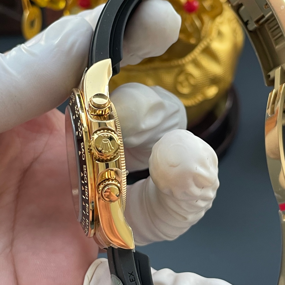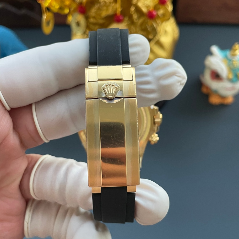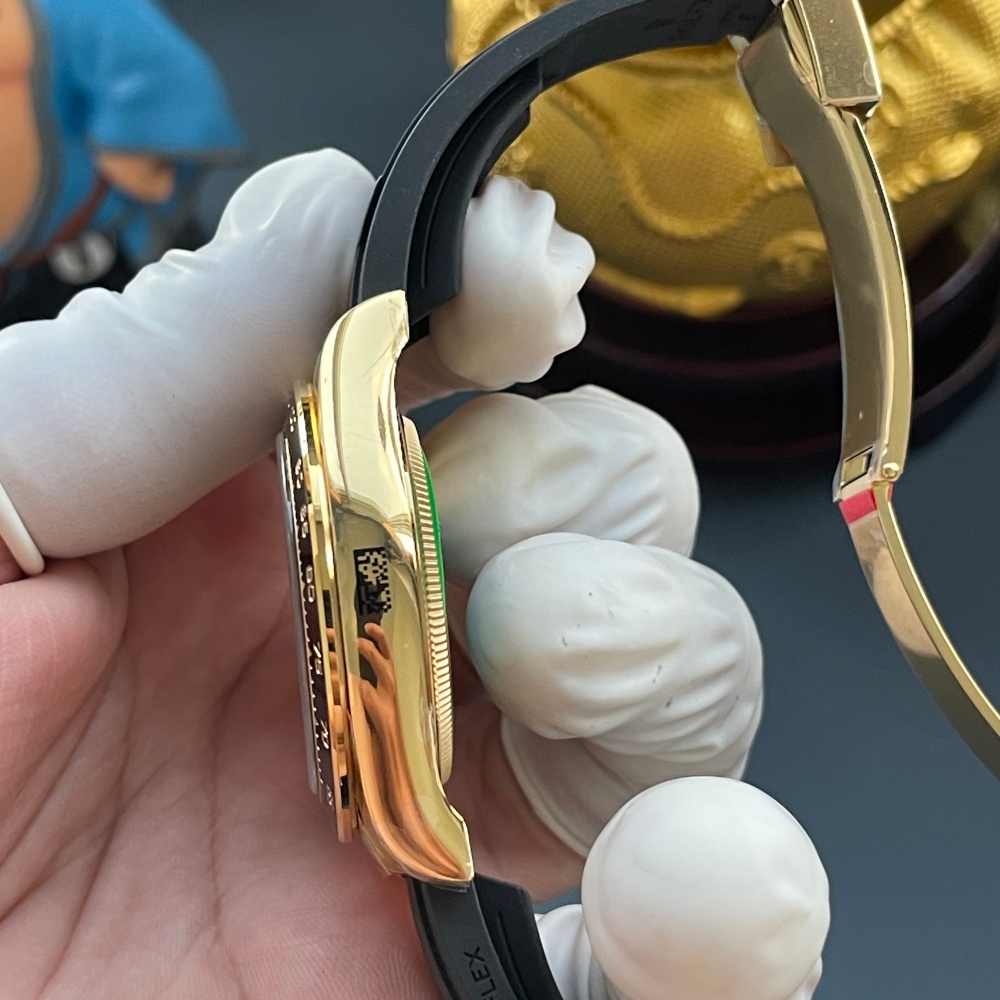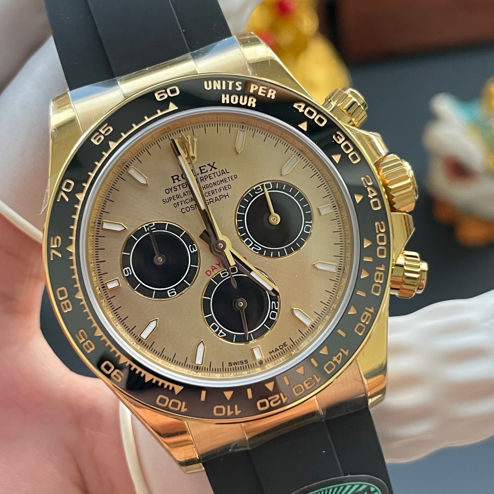ロレックス コスモグラフ デイトナ m126518ln-0012は、ラグジュアリーなゴールデン&ブライトブラックダイアルと、スポーティーなラバーストラップを組み合わせた人気モデルです。