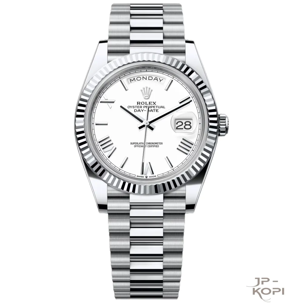 ロレックス デイデイト M228236-0010は、清潔感のあるホワイト文字盤(ローマ数字)が特徴のラグジュアリーモデルです。シンプルで上品なデザインは、ビジネスやフォーマルシーンにも最適です。