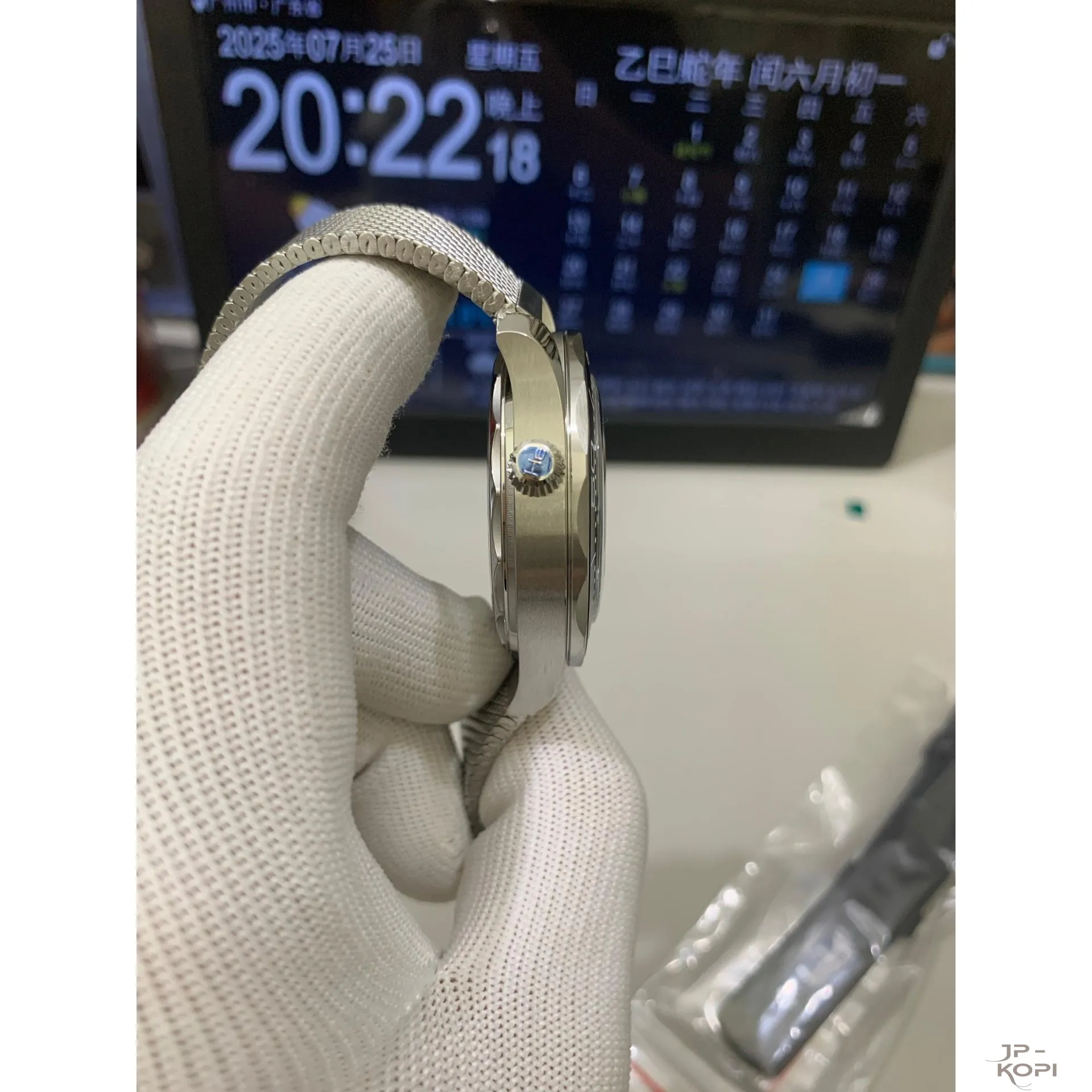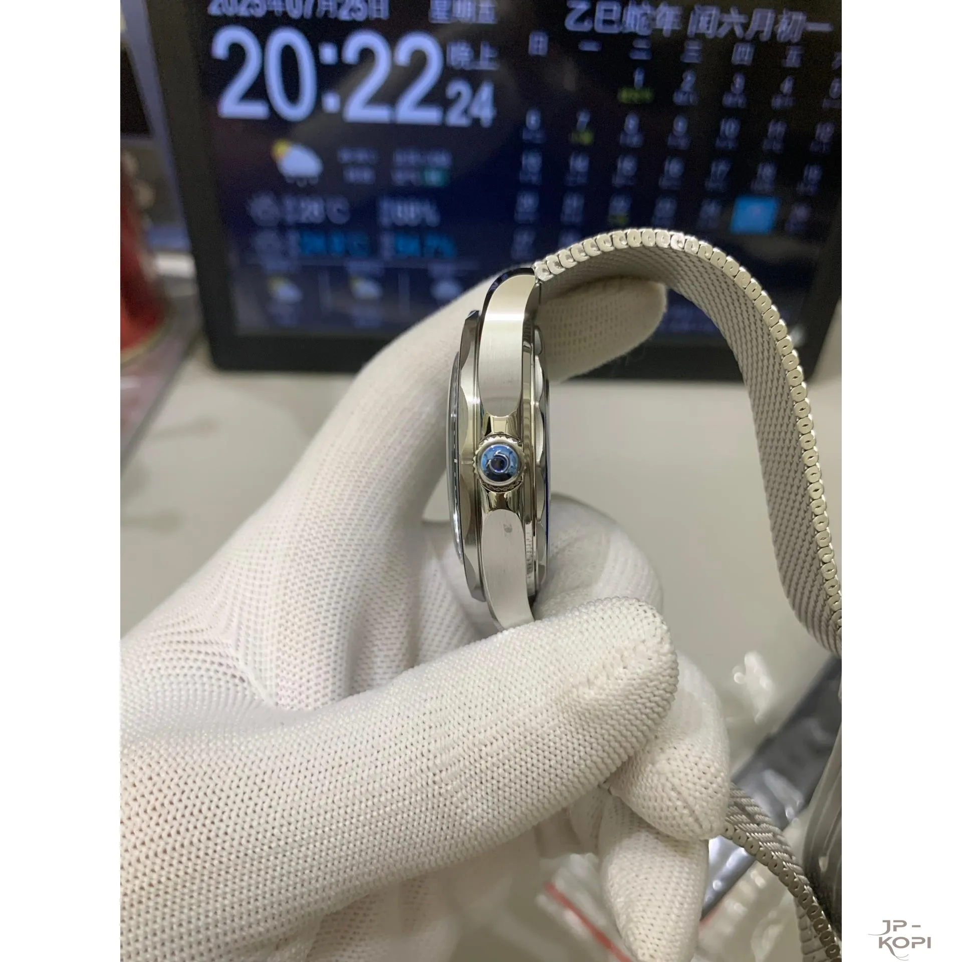 ムーブメントには信頼性の高い丹東 Cal.8800(自動巻き)を搭載。安定した精度と耐久性を備え、シースルーバックから美しく仕上げられたムーブメントを鑑賞できます。