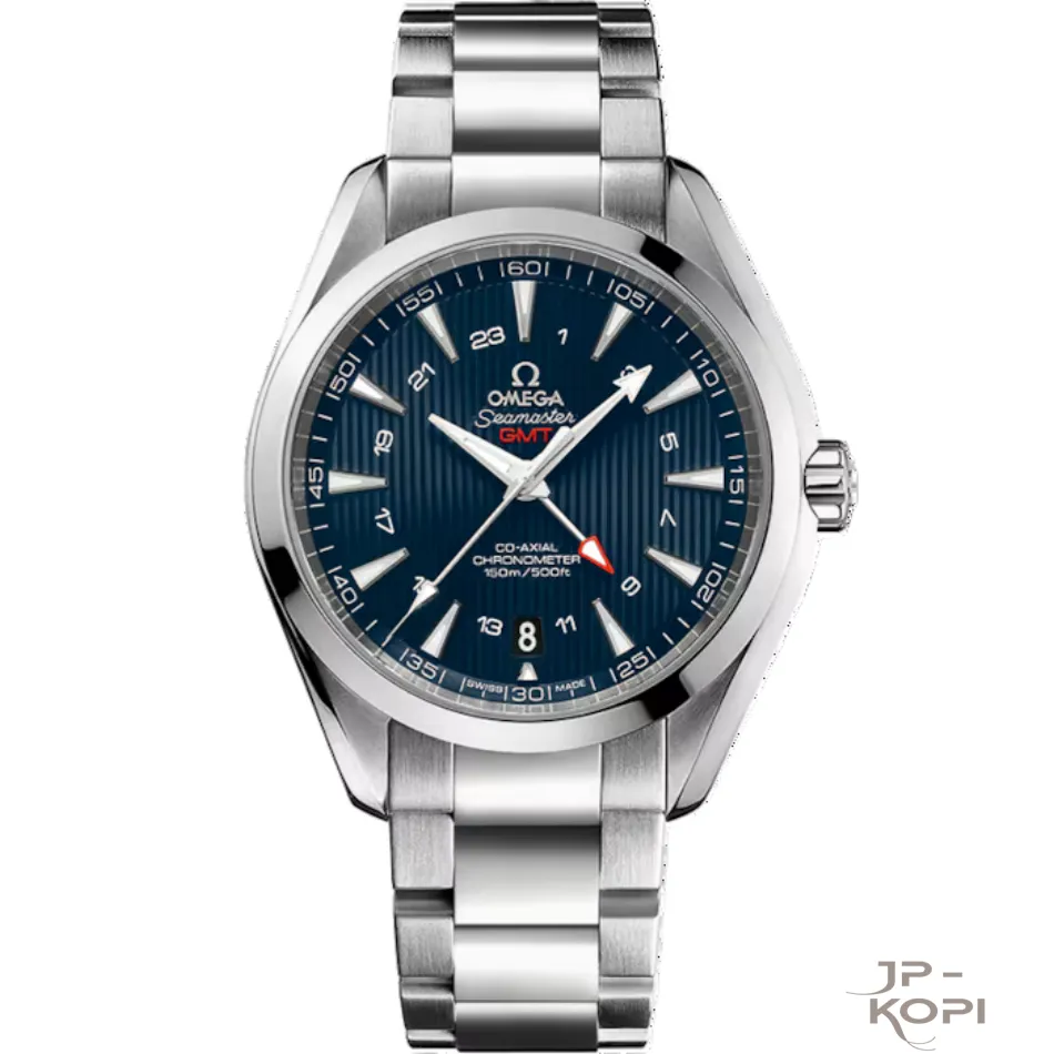 デザインと機能:ブルーダイアルに映えるシルバーの針とインデックス、サファイアクリスタル風防、GMT機能、シースルーバックなど、オメガならではの精密仕様を搭載。スポーティかつエレガントな印象は、ビジネスからカジュアルまで幅広く活躍します。