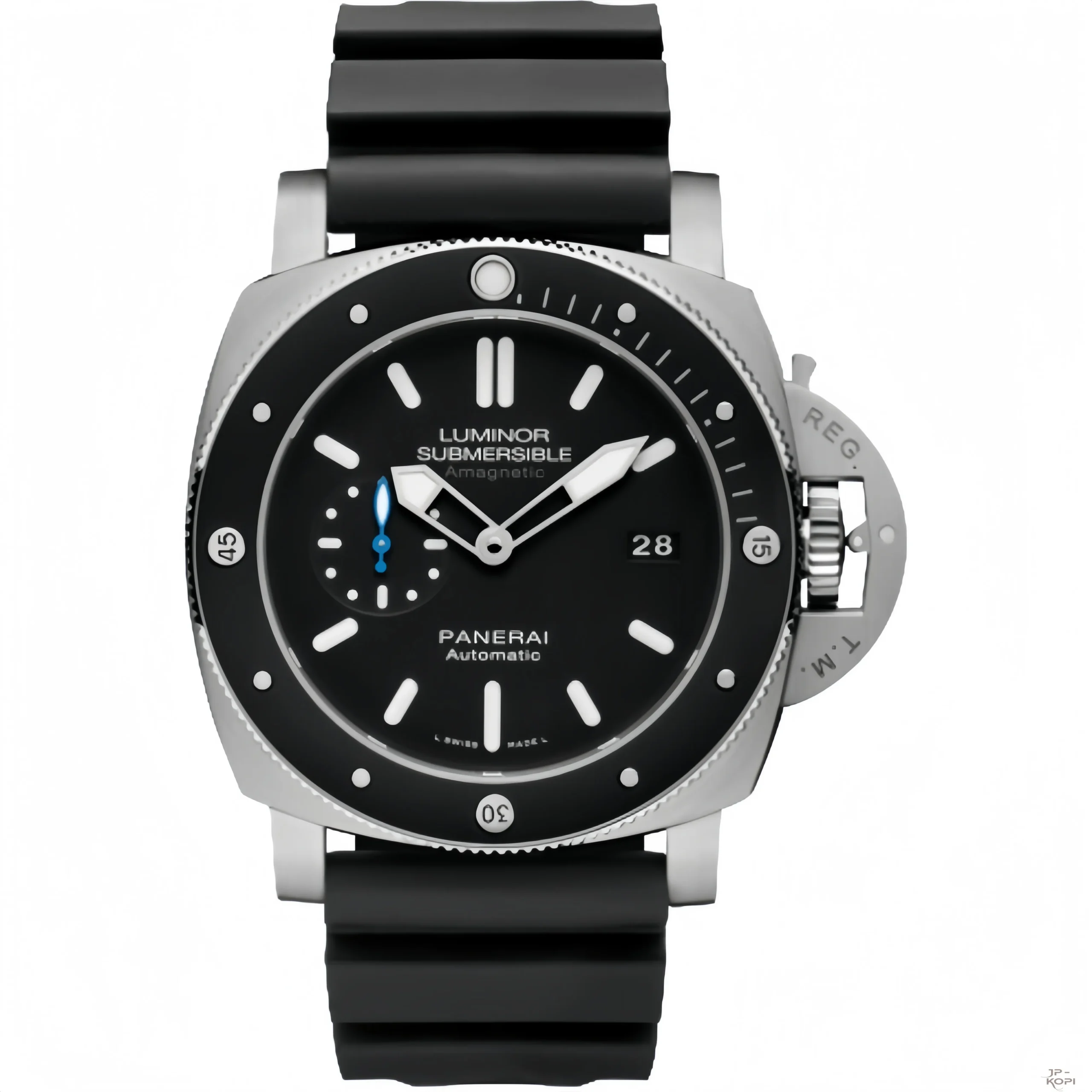オフィチーネパネライ サブマーシブル 1950 3days アマグネティック チタニオ PAM01389は、VS工場製のN+ランク高品質コピー腕時計です。ブラックダイアルとブラック回転ベゼルが精悍な印象を与え、チタンケースとラバーストラップの組み合わせにより、耐久性と装着感を両立したデザインです。