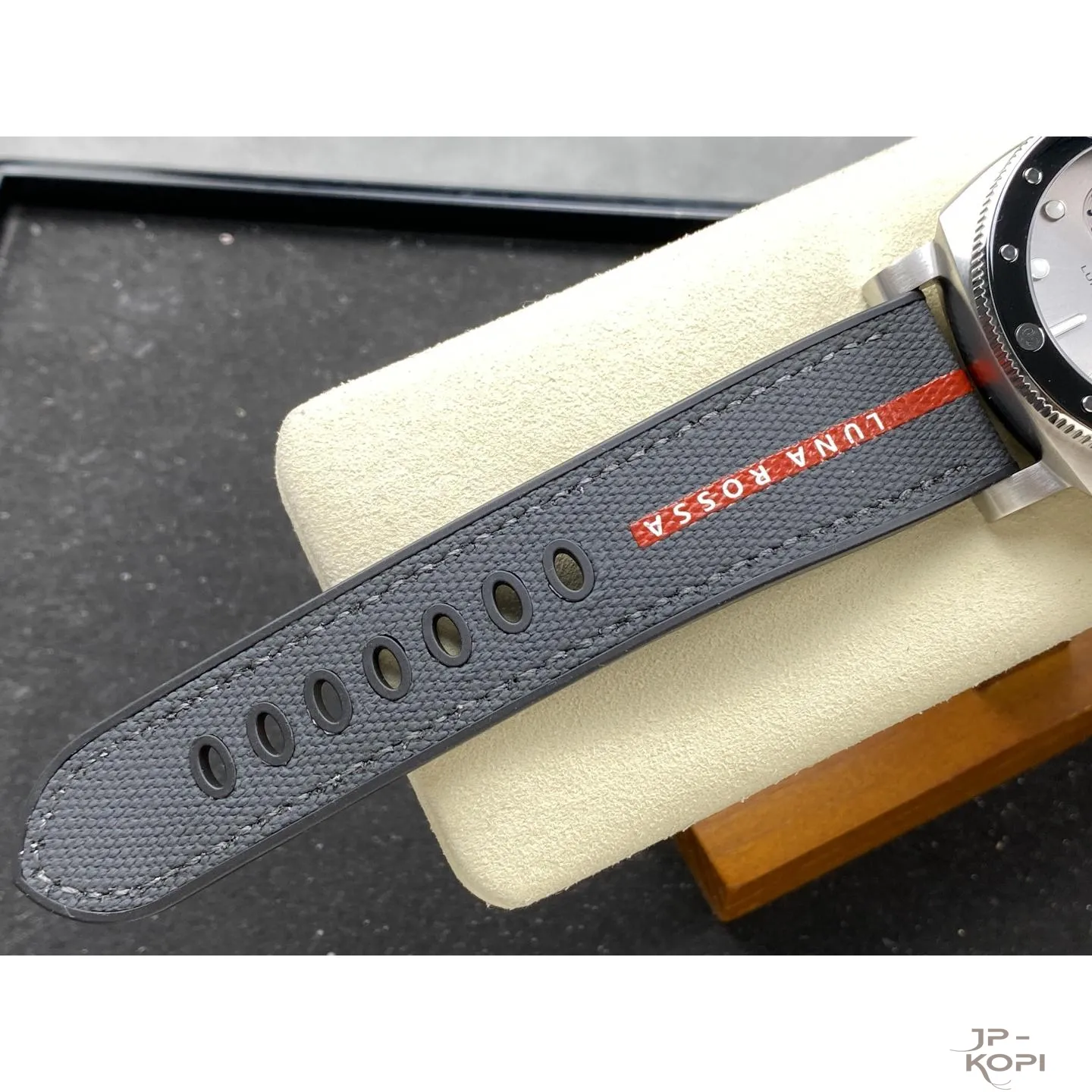 ストラップには、ルナ・ロッサ仕様のラバー&テキスタイル複合素材を採用し、スポーティかつエレガントな仕上がりとなっています。