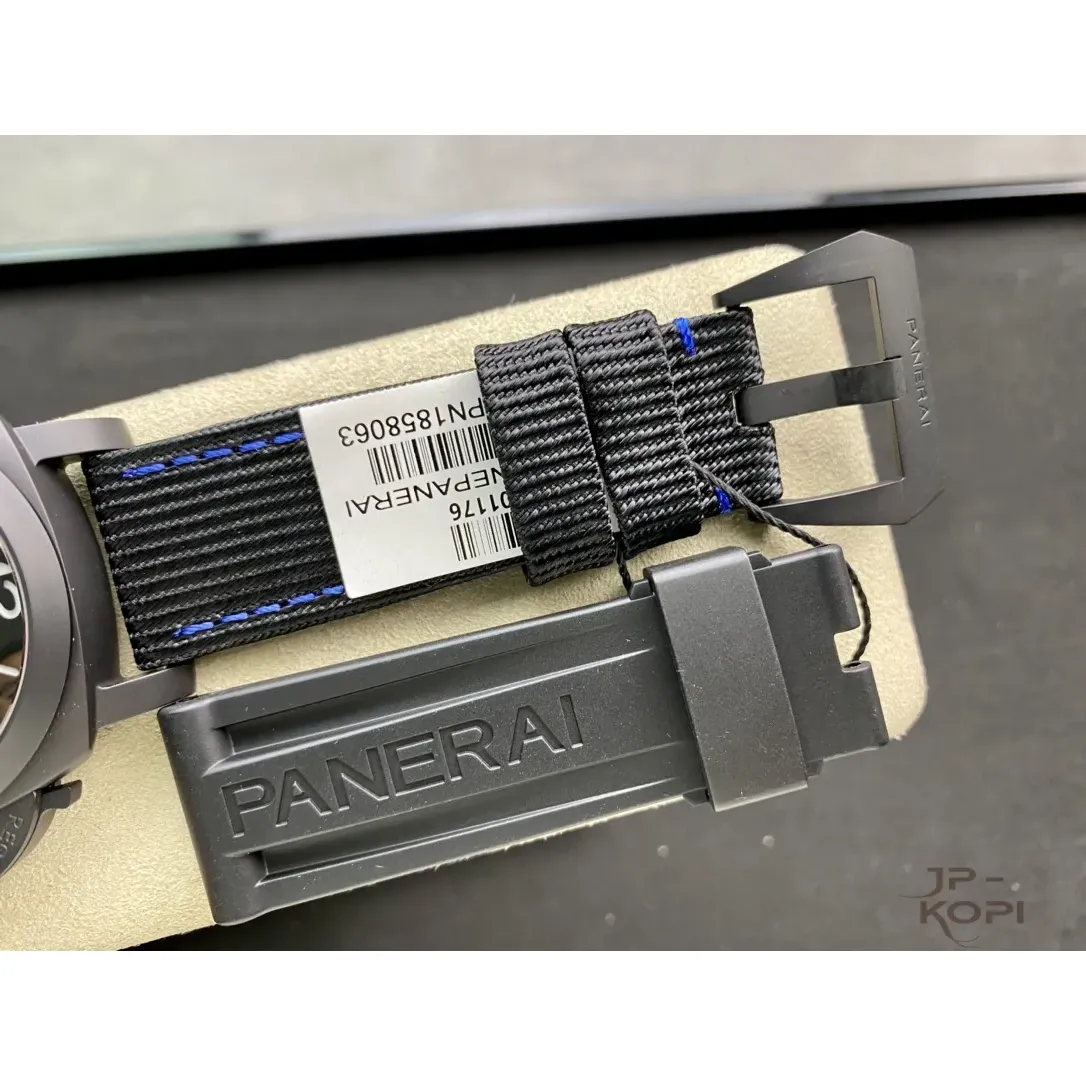 PANERAI(パネライ)PAM01176は、精悍な印象を与えるブラックセラミックケースに、シンプルで視認性の高いブラック文字盤を組み合わせたモデルです。