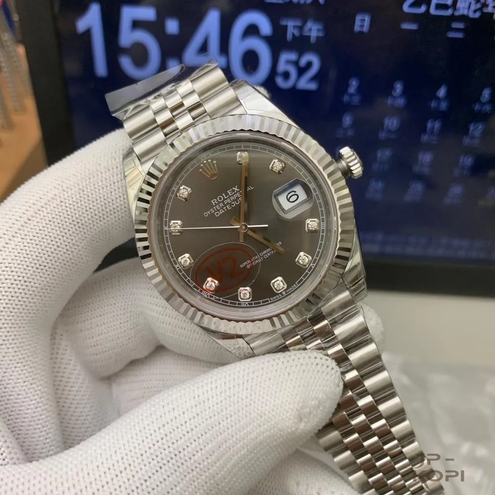 m126334-0006ロレックス デイトジャスト126334-0006|ダイヤ入りスレート 41mm 丹東Cal.3235 V2【VS工場製 高品質コピー腕時計】