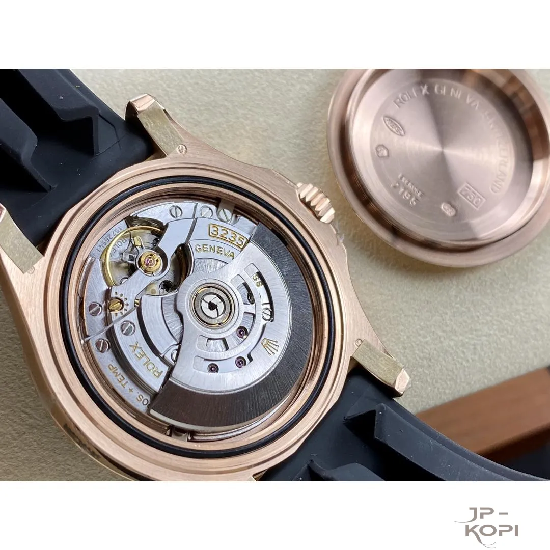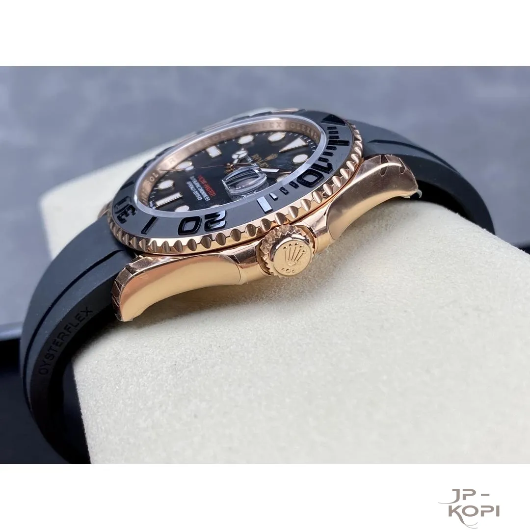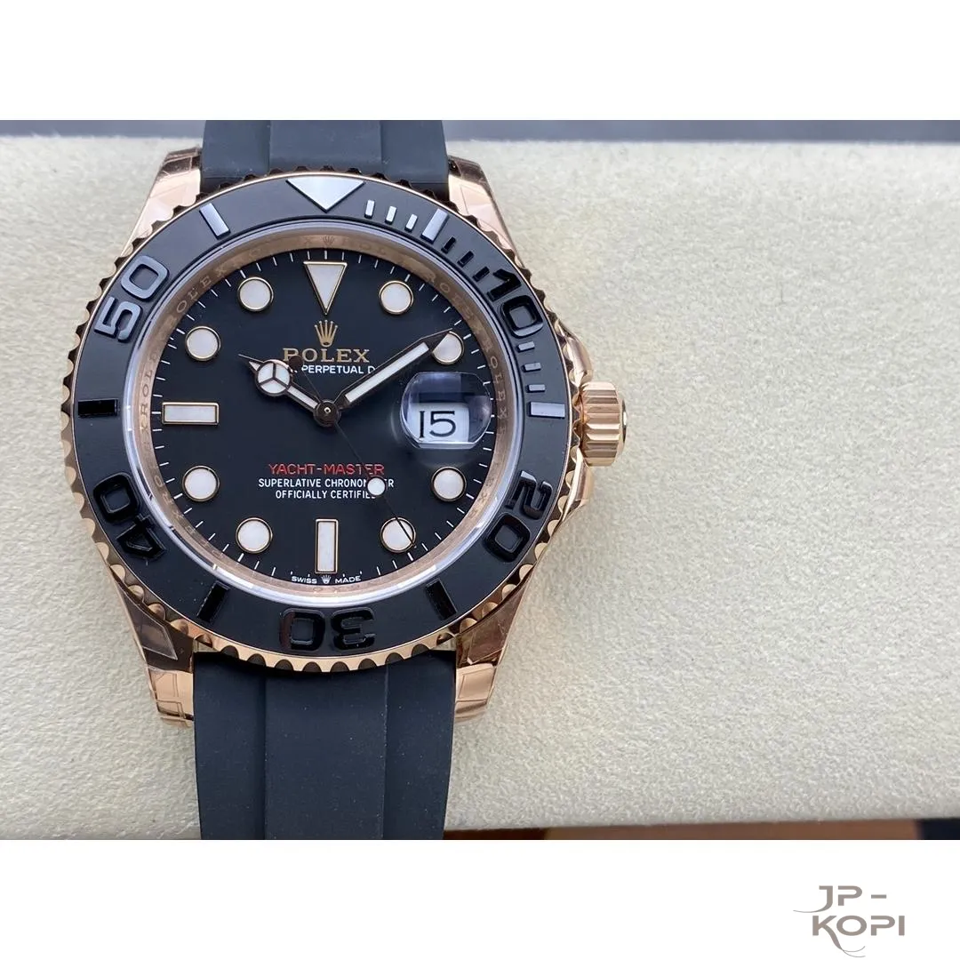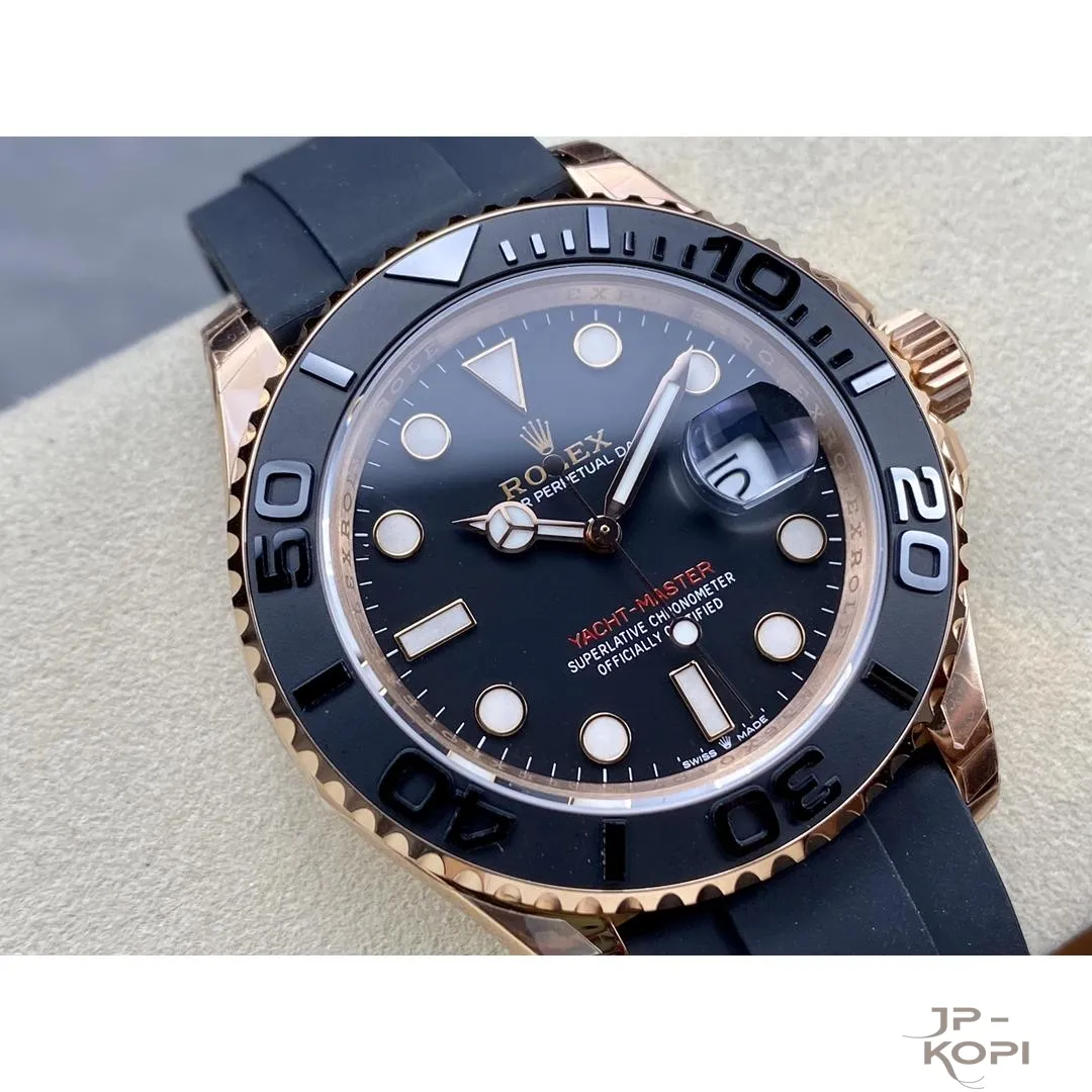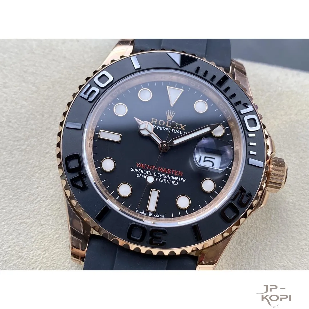 ロレックス ヨットマスター40 126655|ブラックダイアル エバーローズゴールドメッキ ラバーベルト 40mm 丹東Cal.3235【VS工場製 高品質コピー時計】