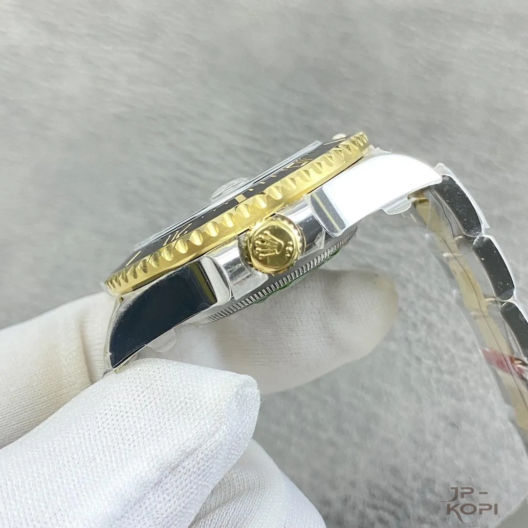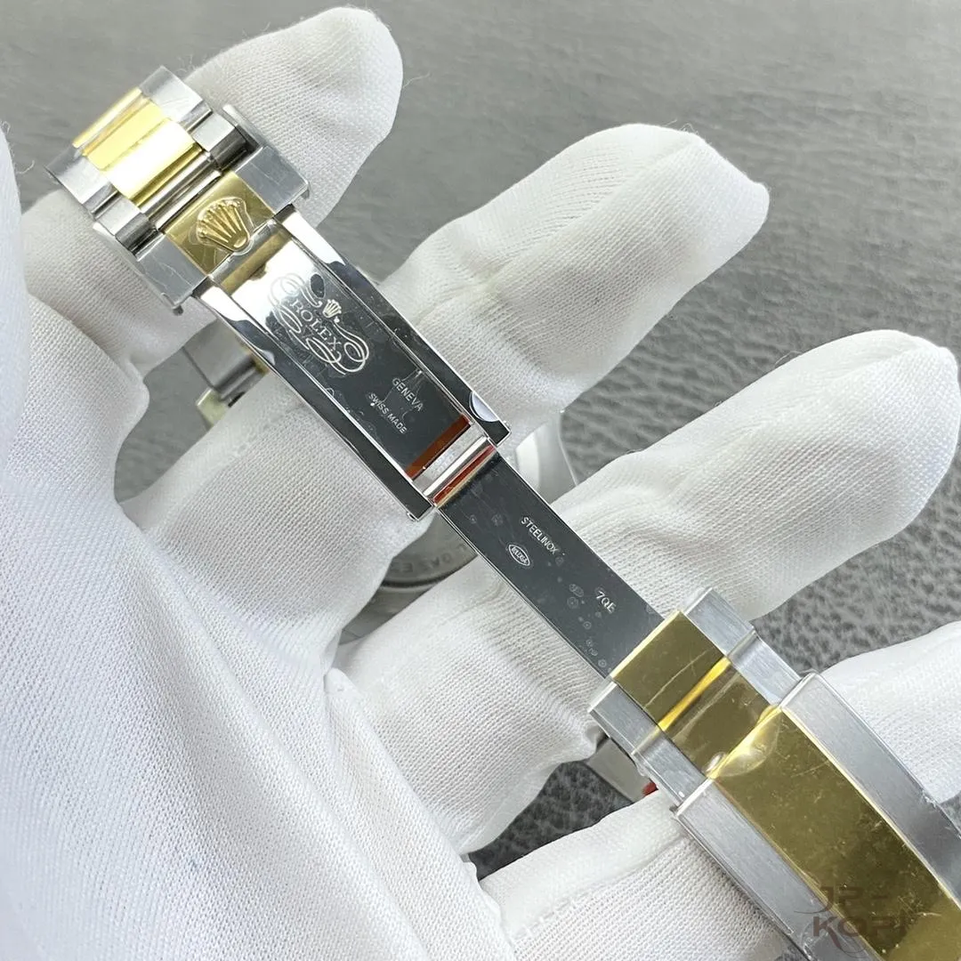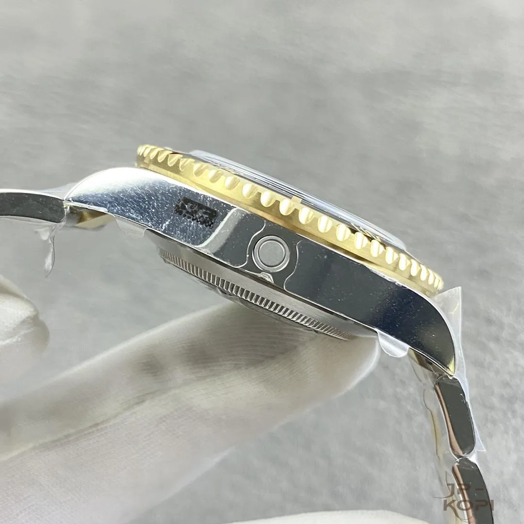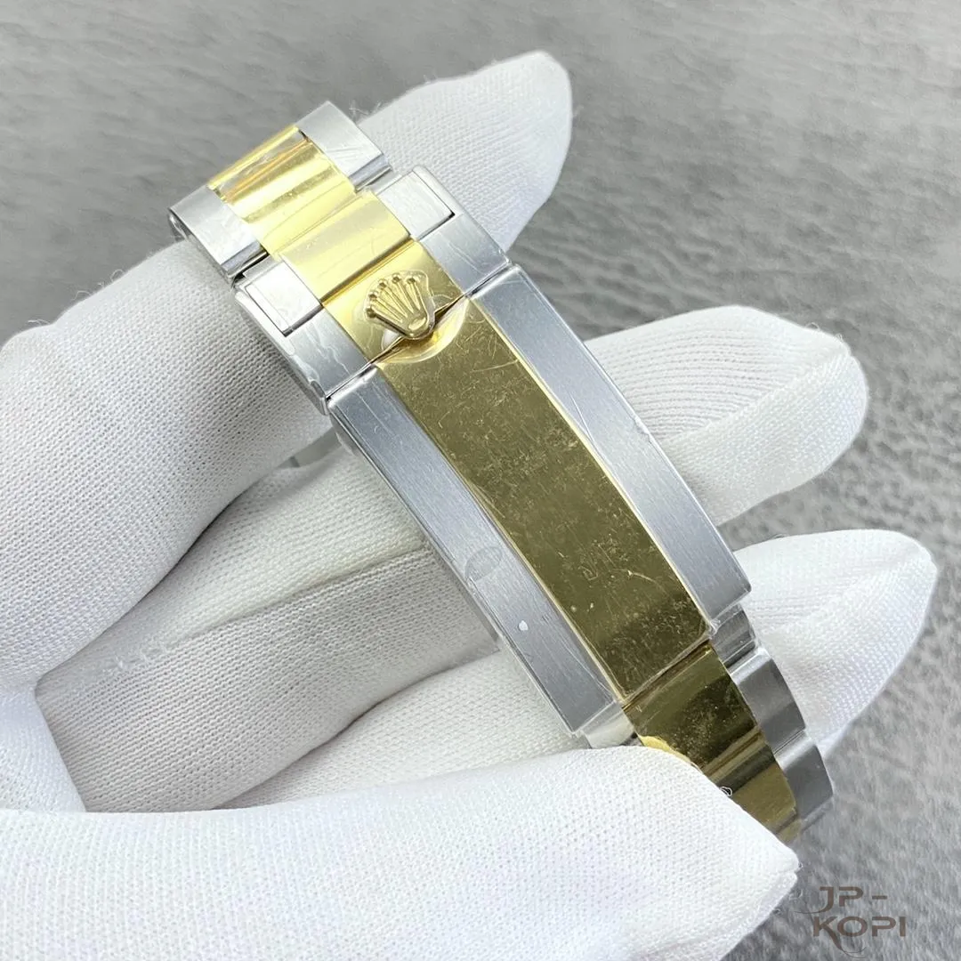 ケースとブレスレットには904Lステンレス×イエローゴールドメッキを採用し、高い耐久性と華やかさを両立。
