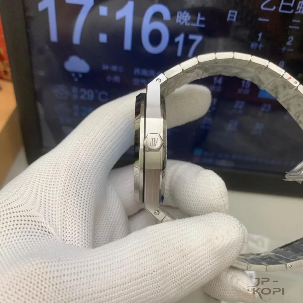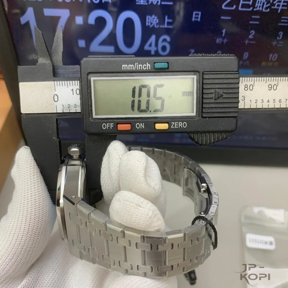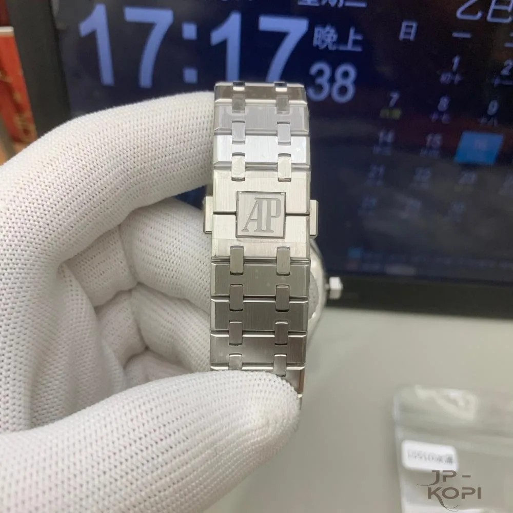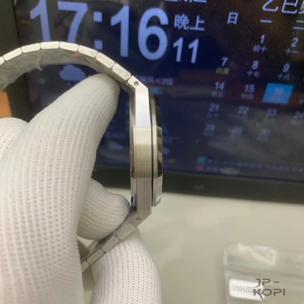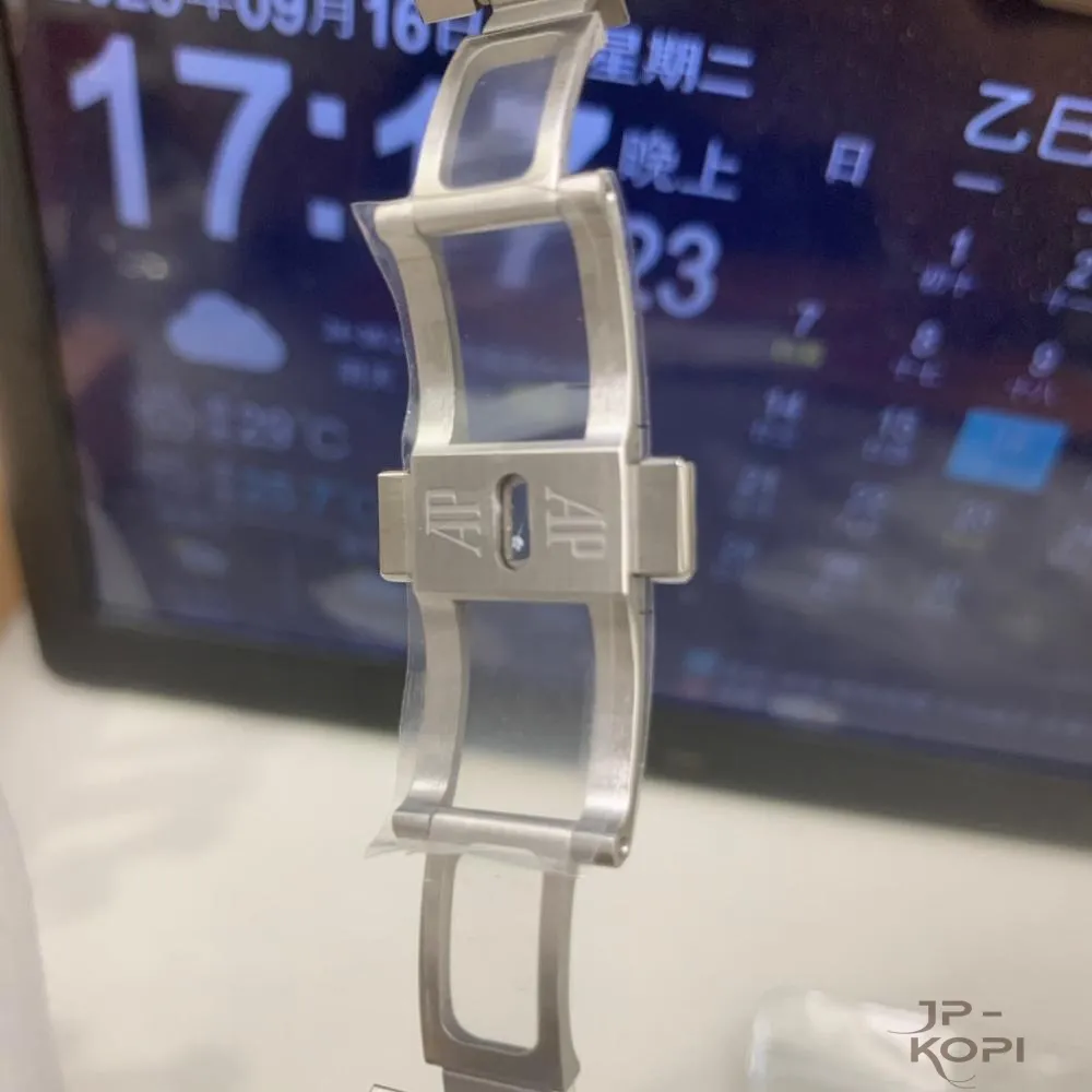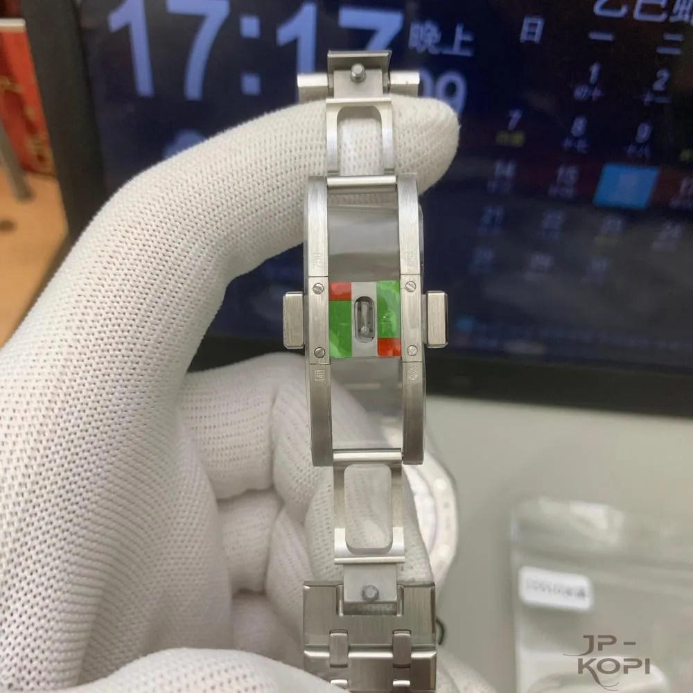 ブレスレットは904Lステンレス製APフォールディングバックル仕様で、堅牢性と着用感を兼ね備えています。